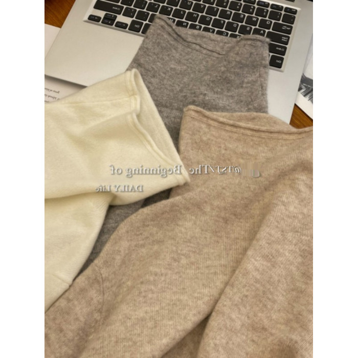 米色【長袖針織衫/辣妹/早秋/春秋/初秋新款上衣女/2023新款/茶系穿搭/設計感小衆/洋氣】 羊毛打底衫女秋冬/內搭打底衫