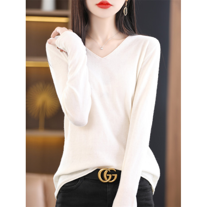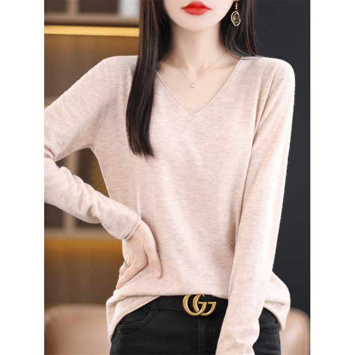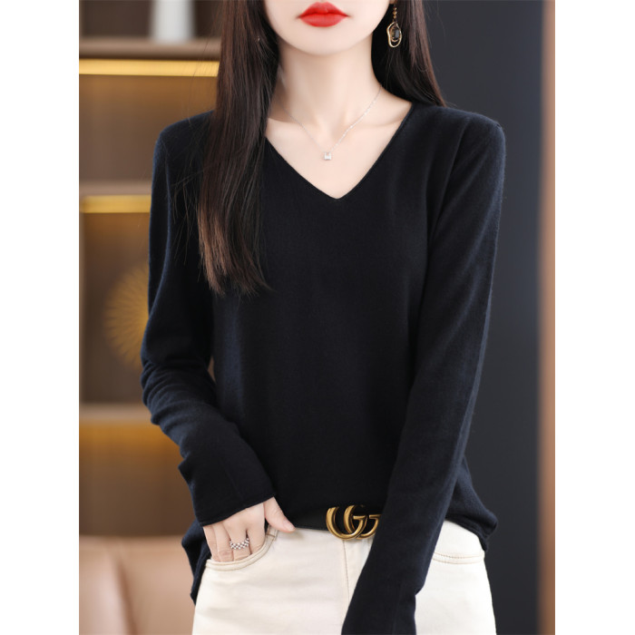羊絨v領打底衫女內搭毛衣秋冬羊毛薄款2025新款長袖針織黑色上衣