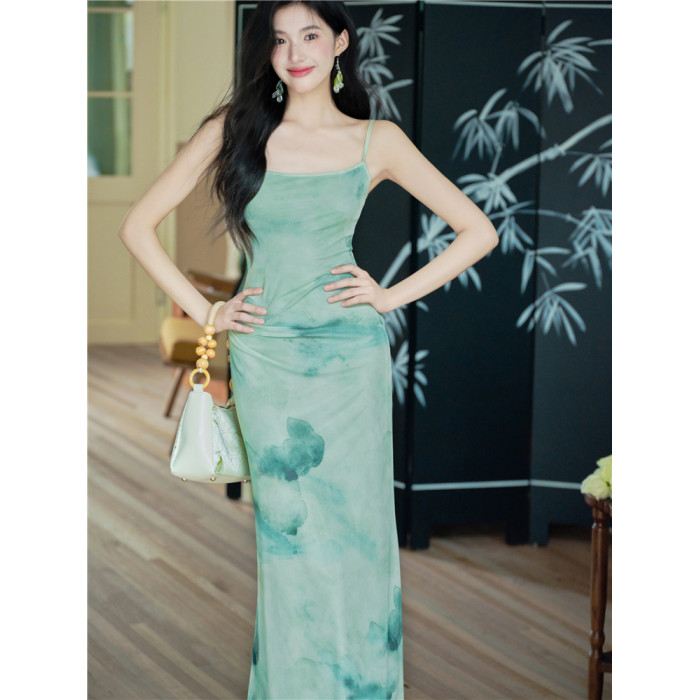 高級感法式方領黑色波點連衣裙2025新款夏季穿搭獨特漂亮掐腰長裙