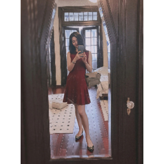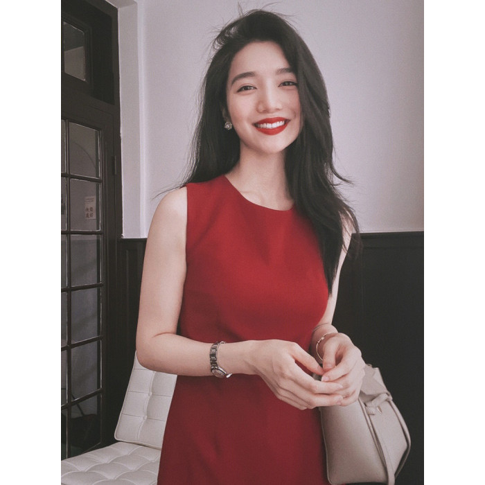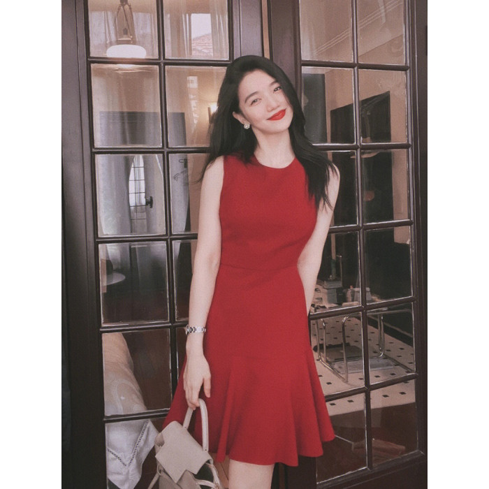 沫晗依美慵懶掐腰休閒寬松量感T恤後開叉連衣裙2025夏季新款長裙