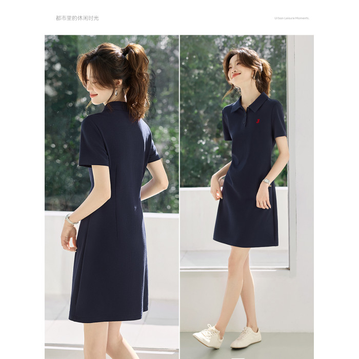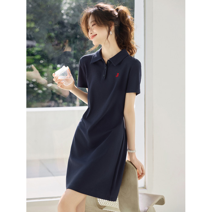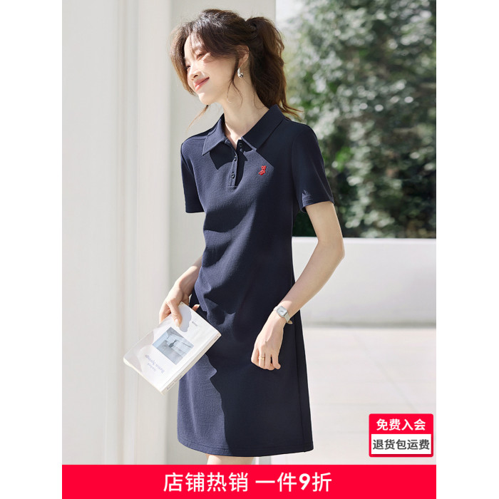 沫晗依美學院風刺綉polo連衣裙2025夏季新款撞色刺綉減齡連衣裙女