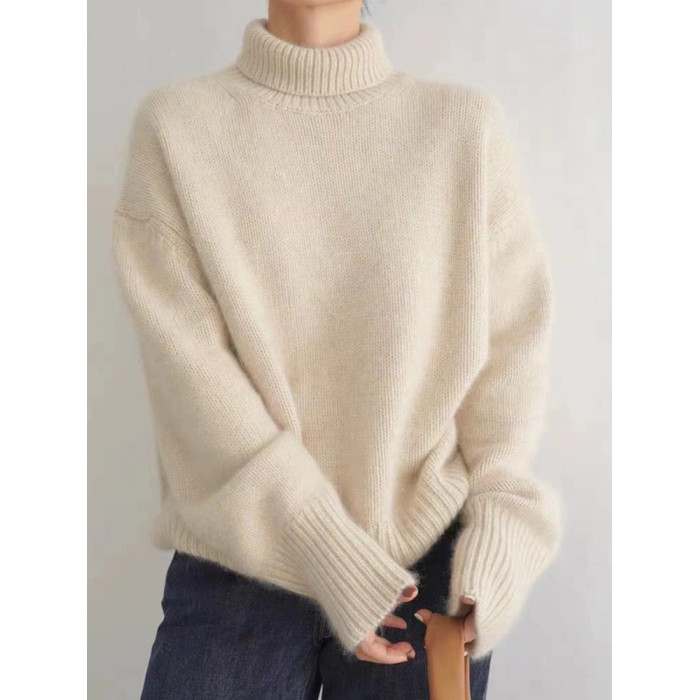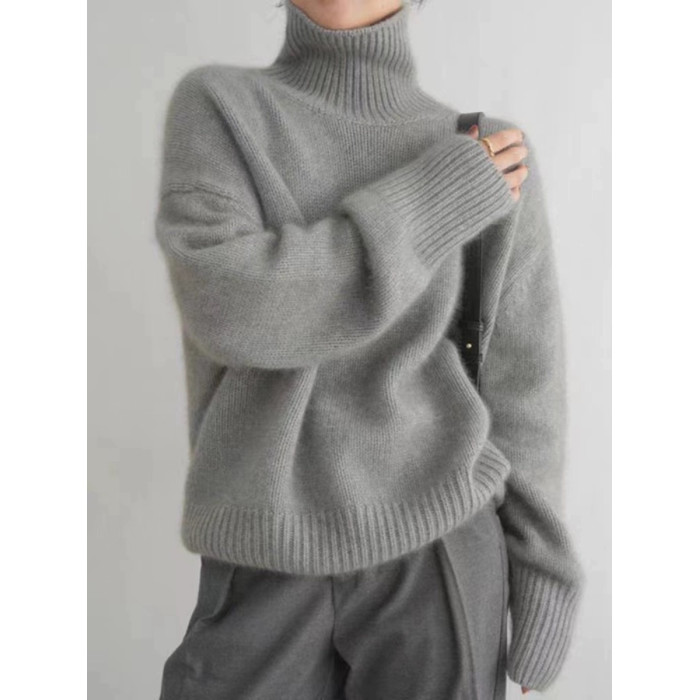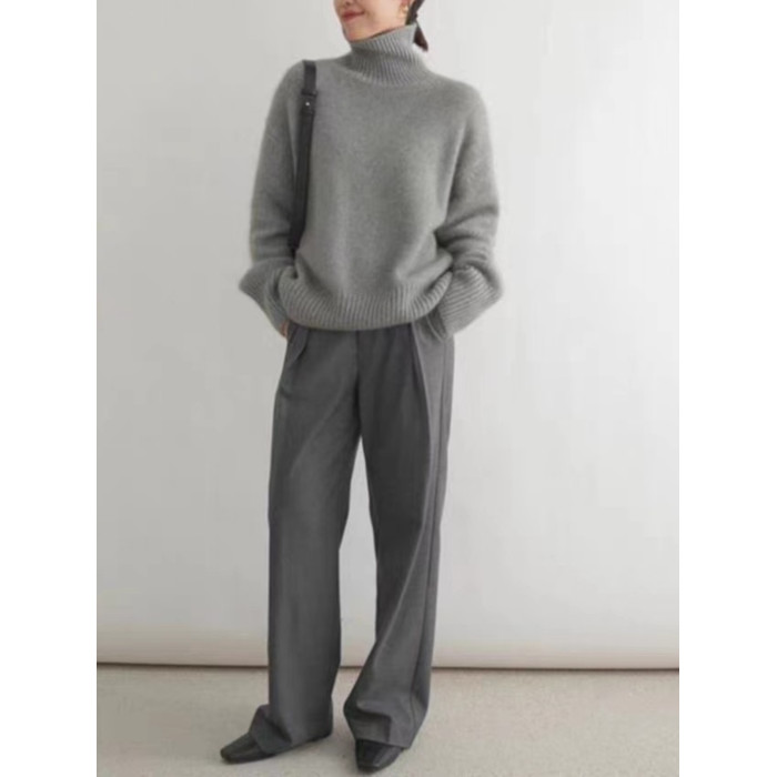 秋冬羊絨衫女毛衣高領純色寬松上衣通勤百搭套頭羊毛針織打底衫
