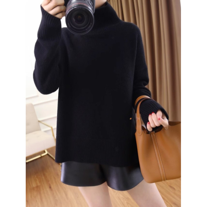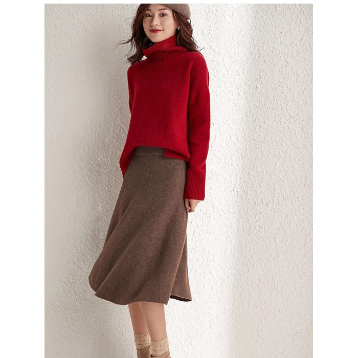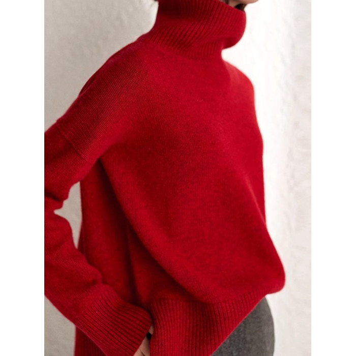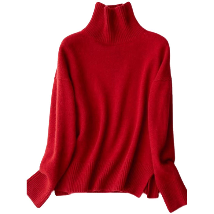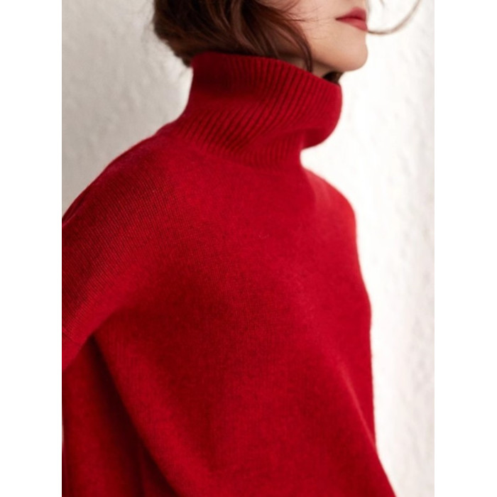 紅色高領羊絨衫女紅色本命年毛衣加厚寬松慵懶風大碼針織打底衫冬