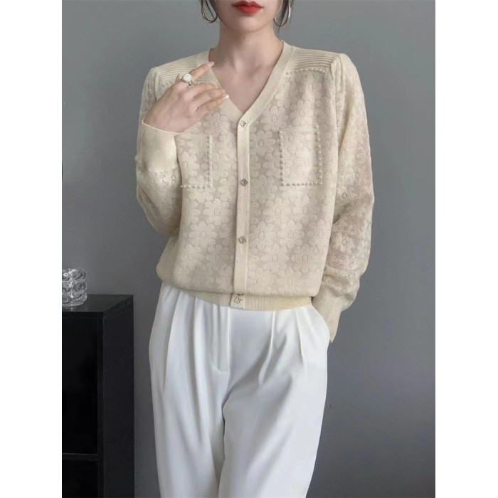 新款洋氣時髦寬松薄款毛衣羊毛打底衫蕾絲上衣百搭顯瘦針織衫女