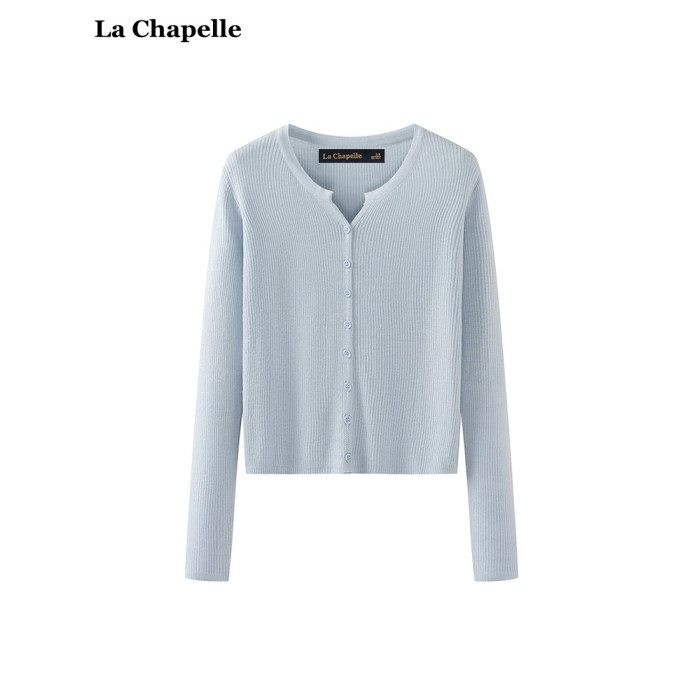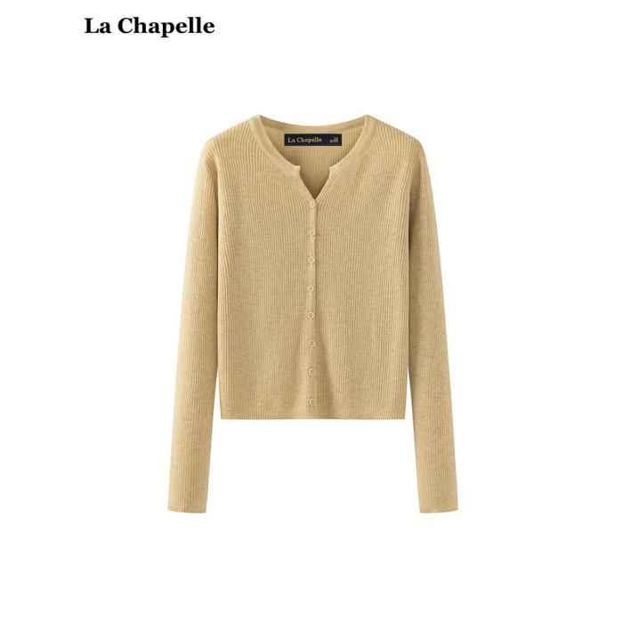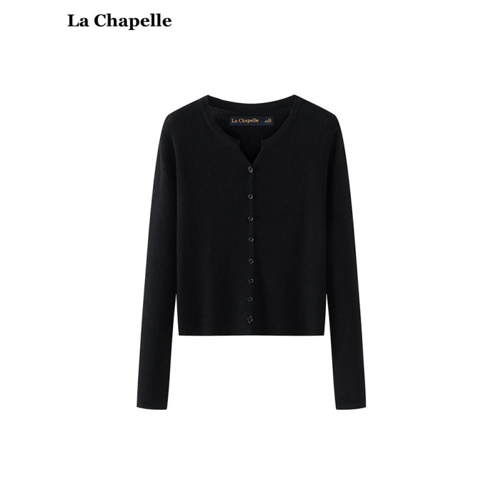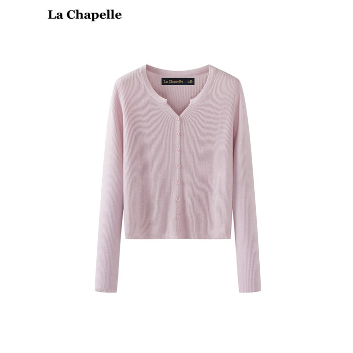 拉夏貝爾/La Chapelle秋冬新款純色V領長袖針織開衫女打底衫上衣