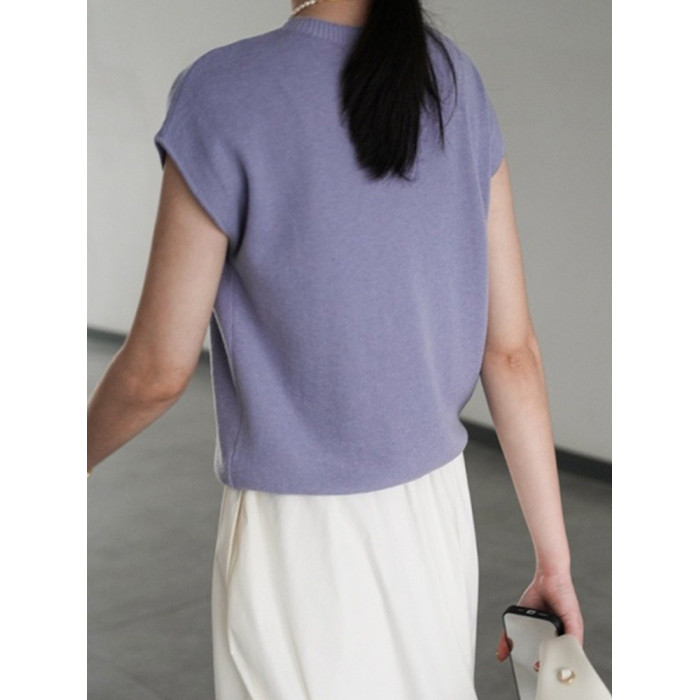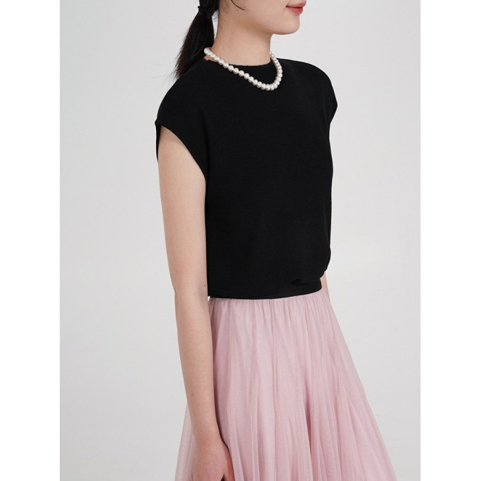 張小某 法式坎肩短袖針織衫女夏季圓領無袖修身打底衫上衣Z17119