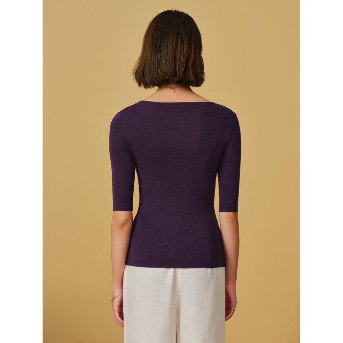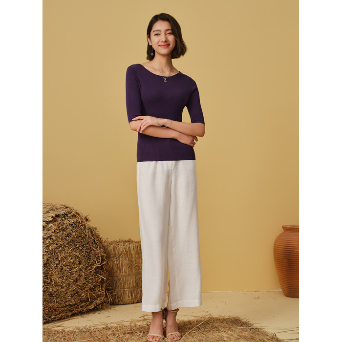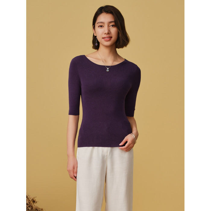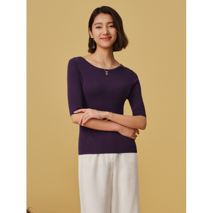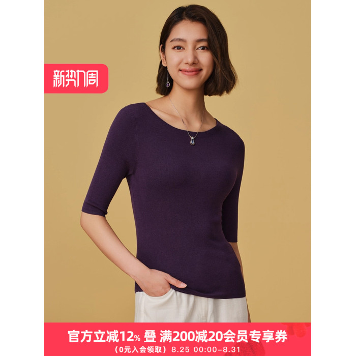 TANGY/天意秋冬新品時尚通勤舒適中袖純色圓領打底衫針織衫