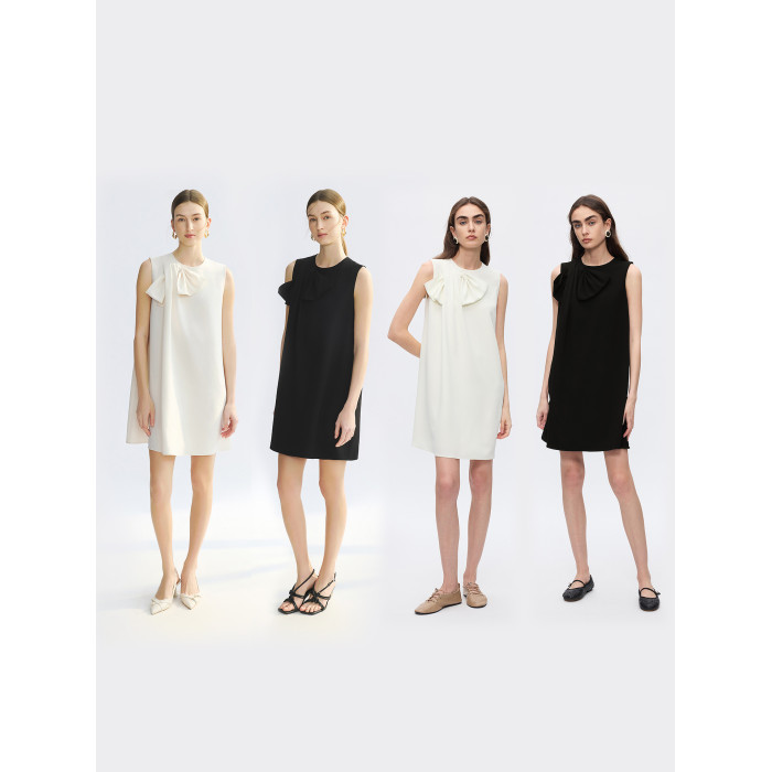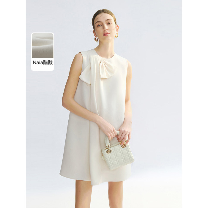 朗姿繆斯裙二醋酸蝴蝶結a字無袖法式輕禮服連衣裙2025年夏季新款