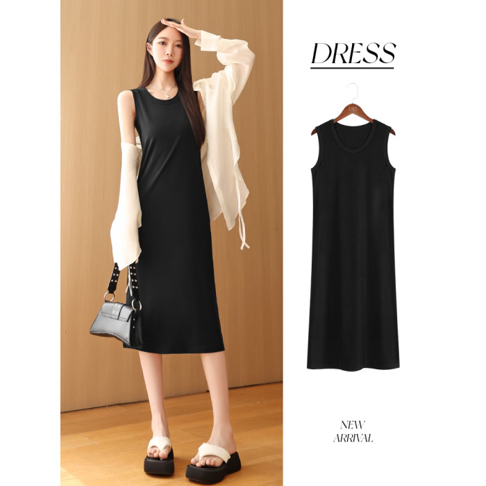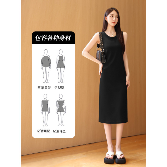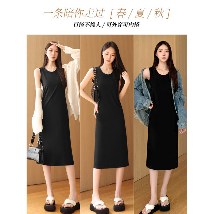 黑色連衣裙女夏季薄款2025新款吊帶小個子打底內搭長款無袖背心裙
