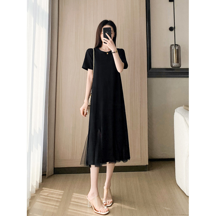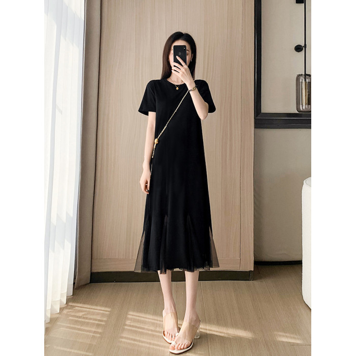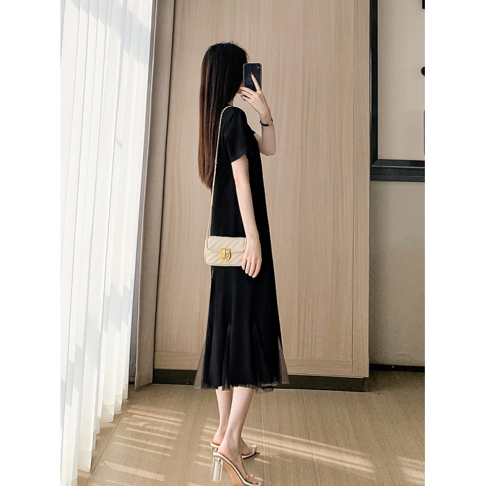 黑色洋氣法式連衣裙女夏季2025新款氣質顯瘦a字裙子小個子小黑裙