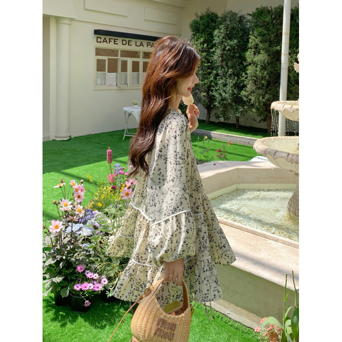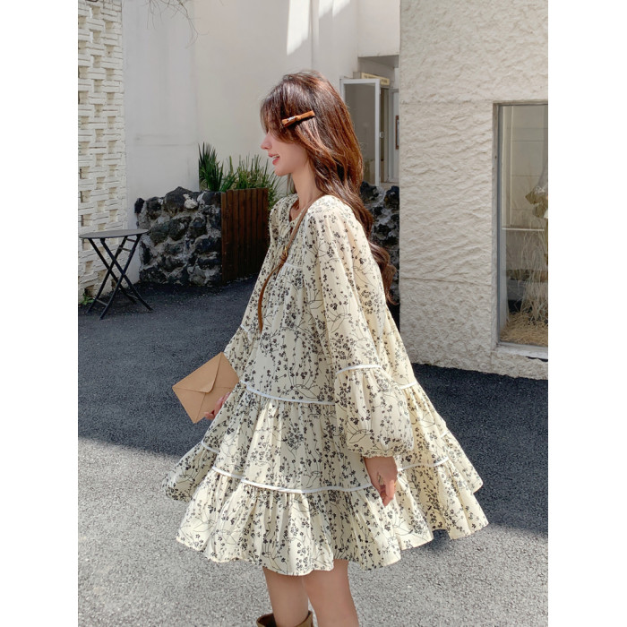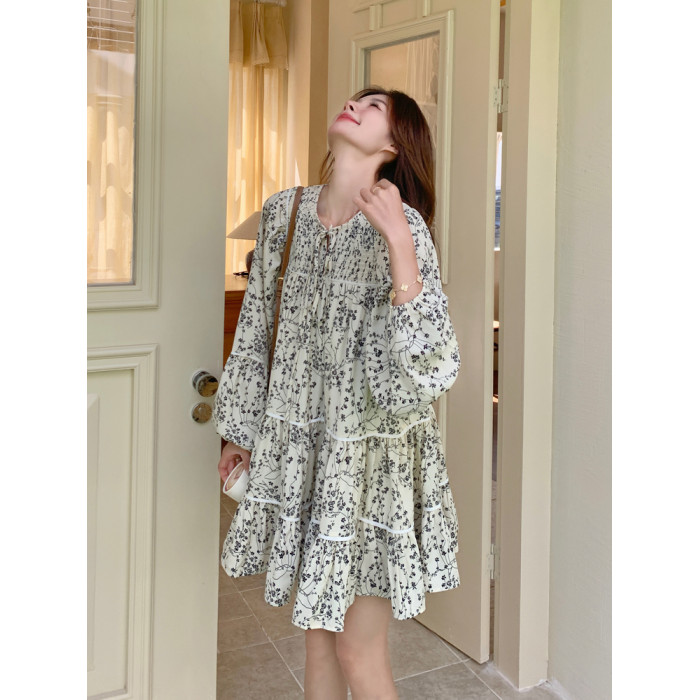 法式復古碎花長袖連衣裙女秋2025新款溫柔風小個子顯瘦A字娃娃裙