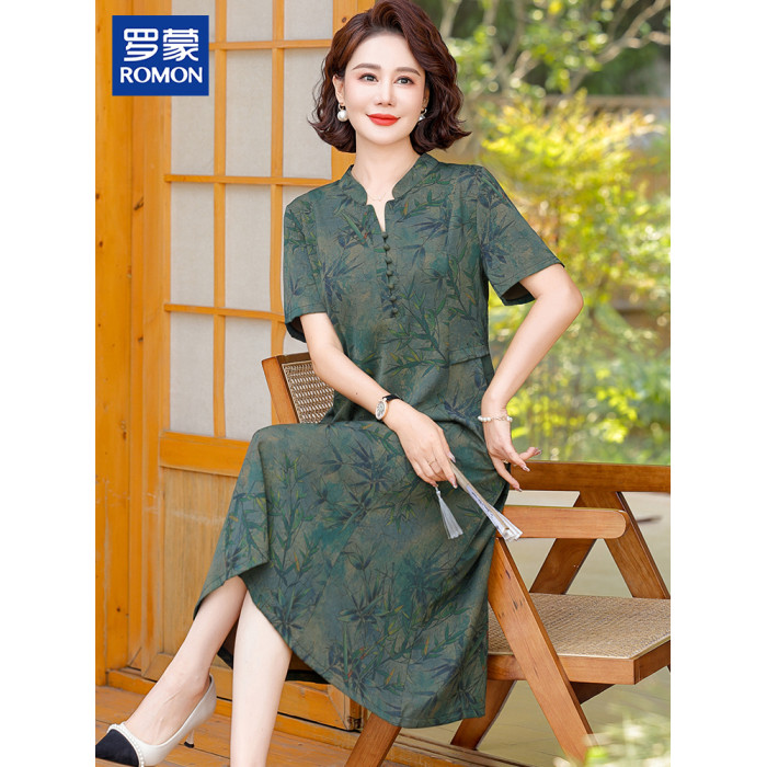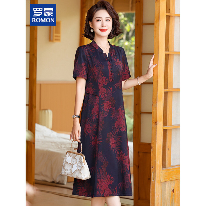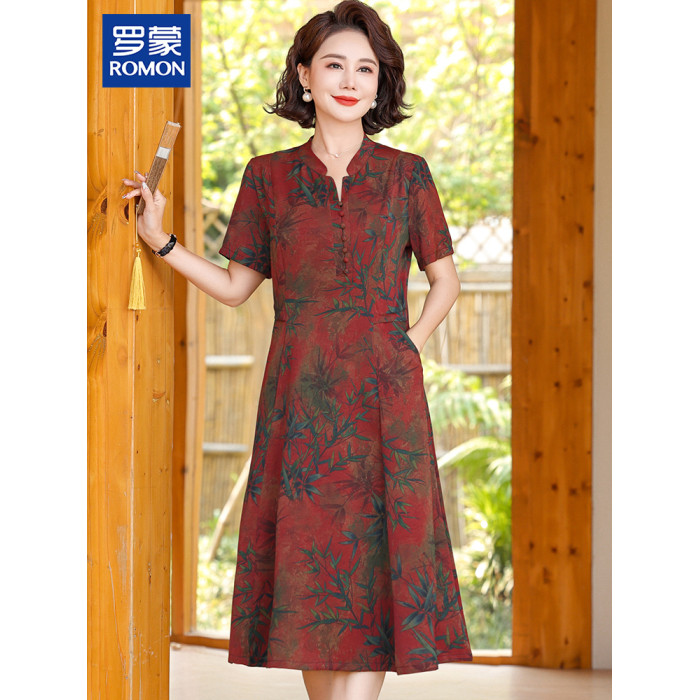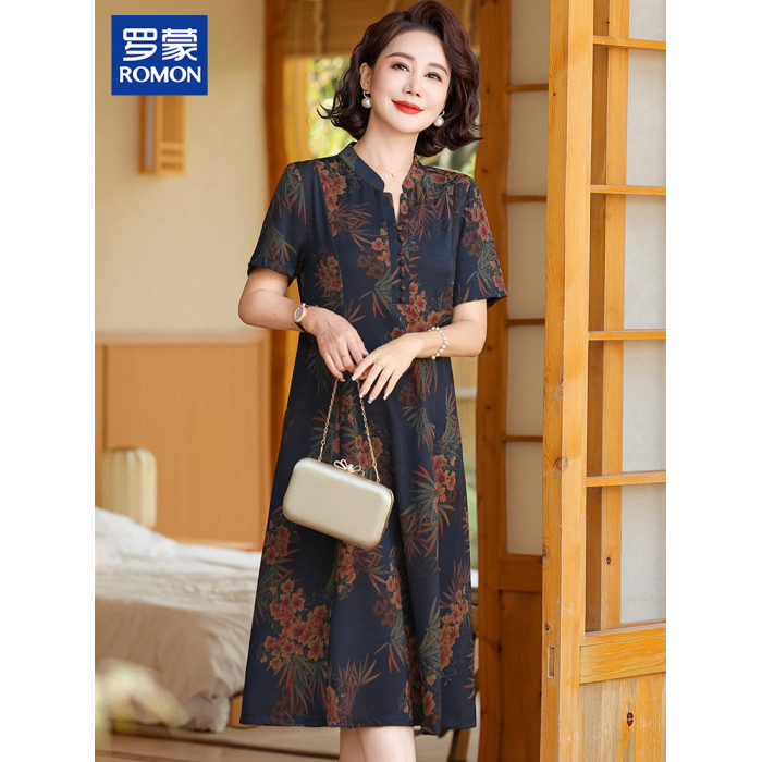 羅矇高級媽媽夏裝連衣裙2025新款40嵗50中老年洋氣短袖女士長裙子