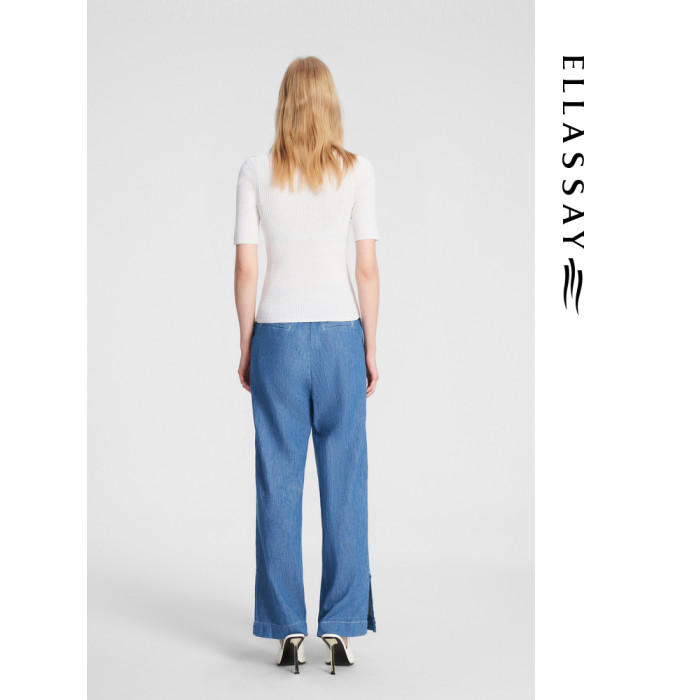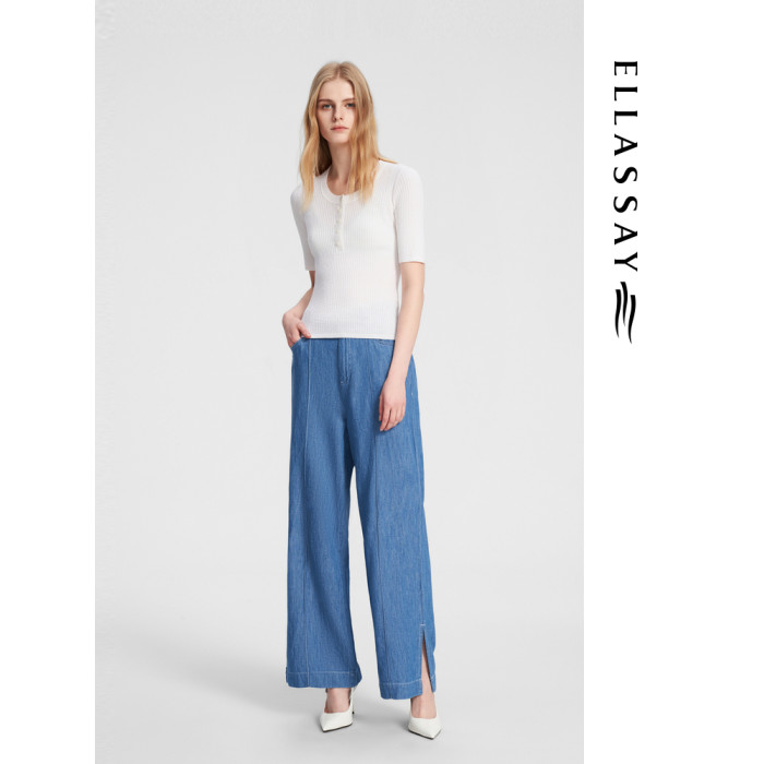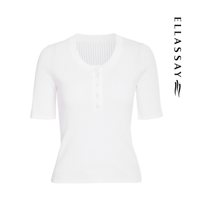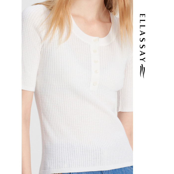 ELLASSAY歌力思春夏新款格紋棉質真絲打底衫內搭毛針織衫女