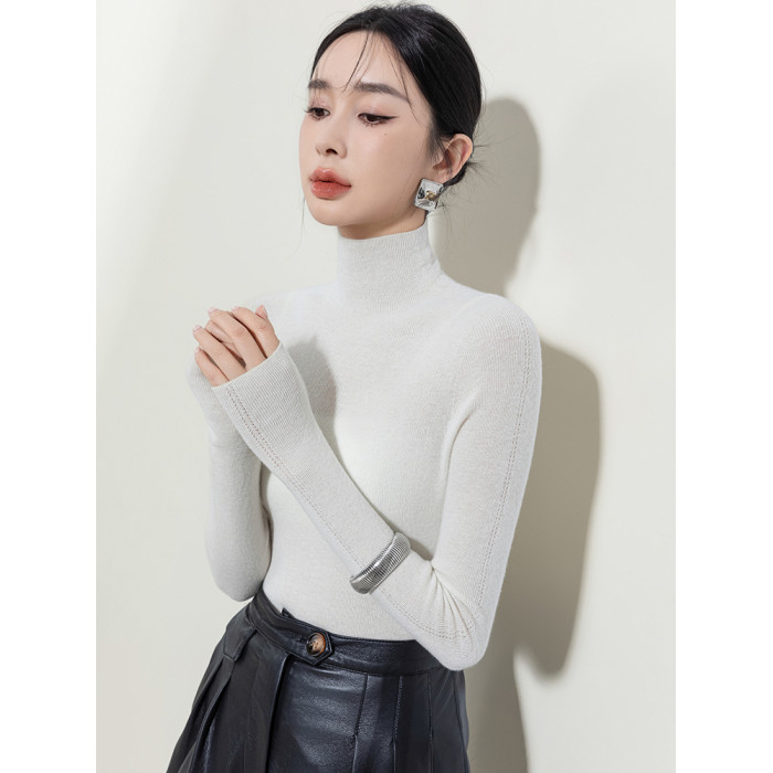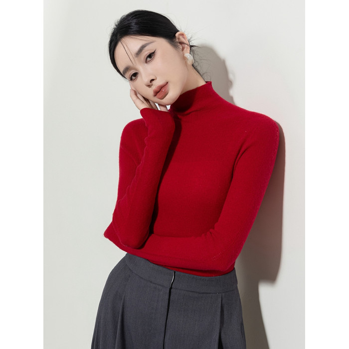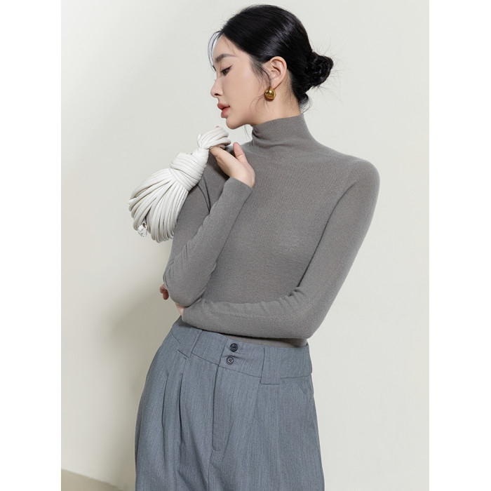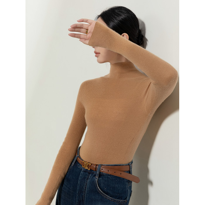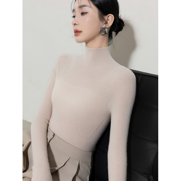 秋冬季精紡修身山羊絨衫女半高領套頭毛衣薄款純色內搭針織打底衫