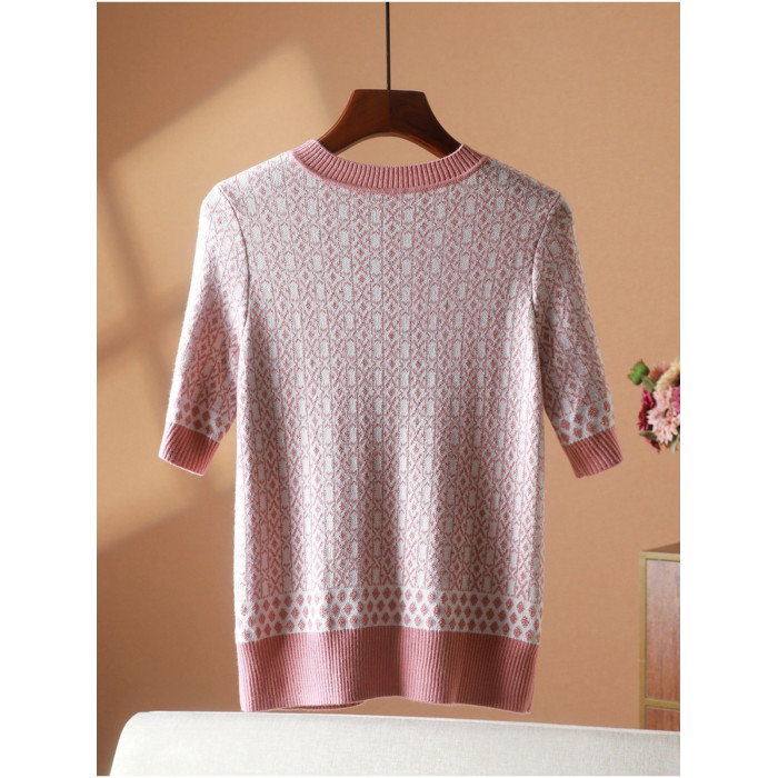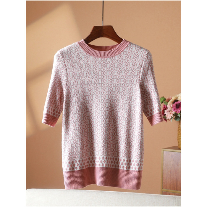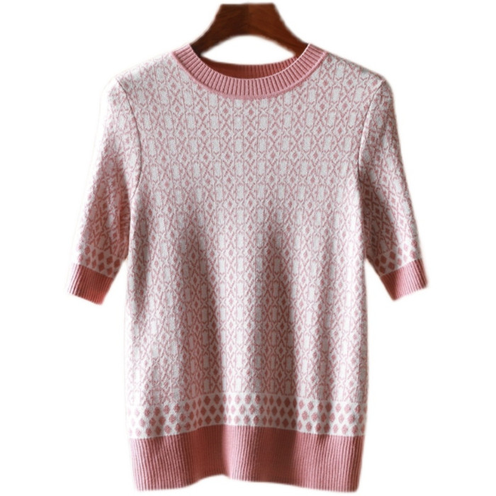 【H系列】羊毛圓領短袖亮絲百搭洋氣減齡針織打底衫春秋新品 熔