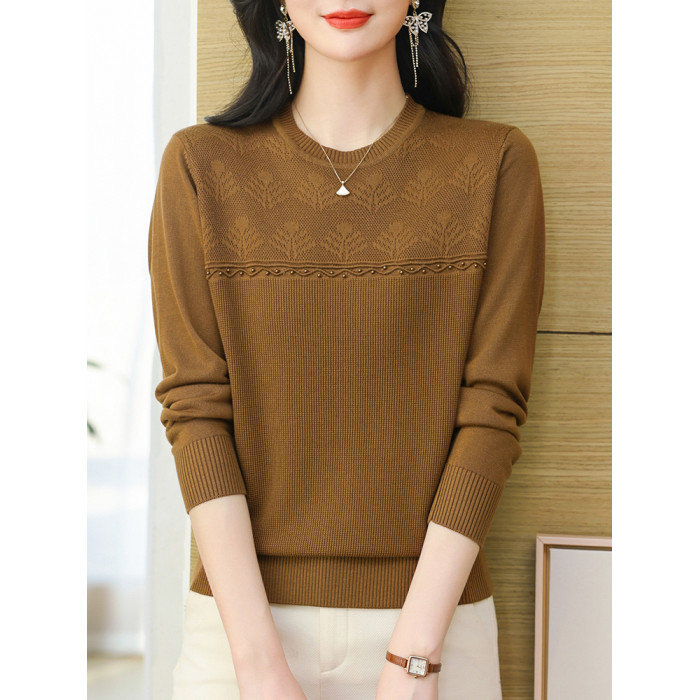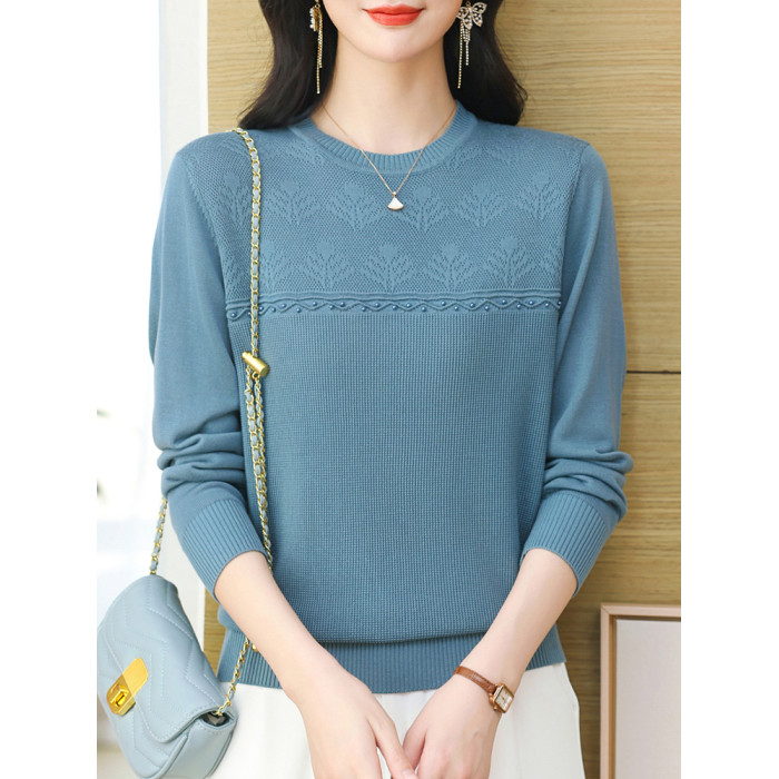 春裝萊塞爾天絲針織衫女2025新款春秋媽媽裝桑蠶絲圓領上衣打底衫