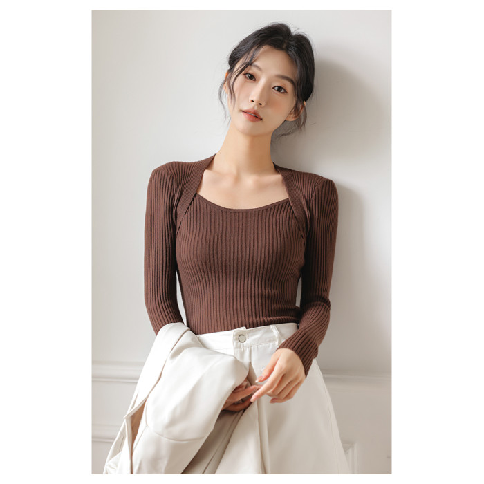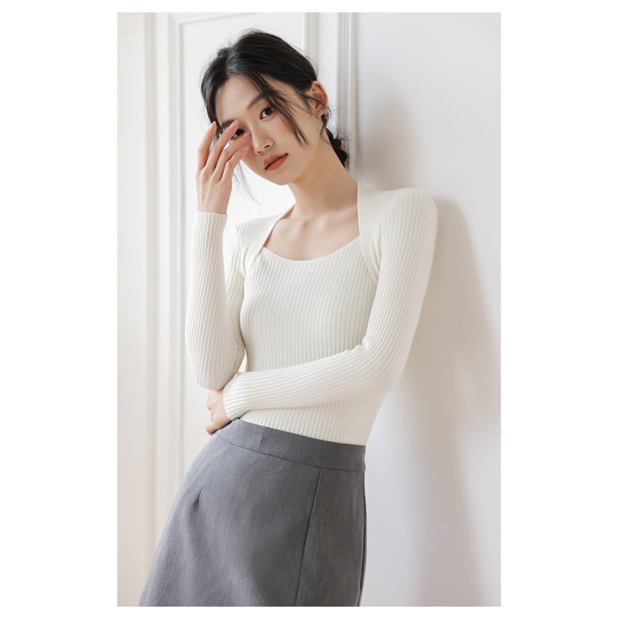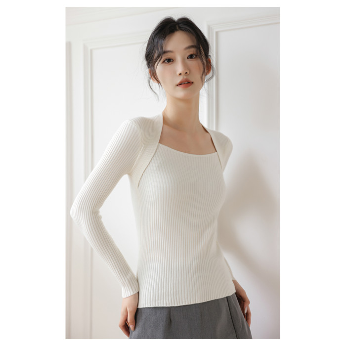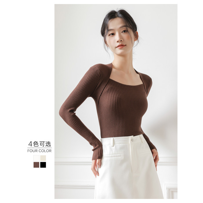 2025別致針織打底衫秋冬女裝U領性感洋氣百搭純色針織衫毛衣上衣