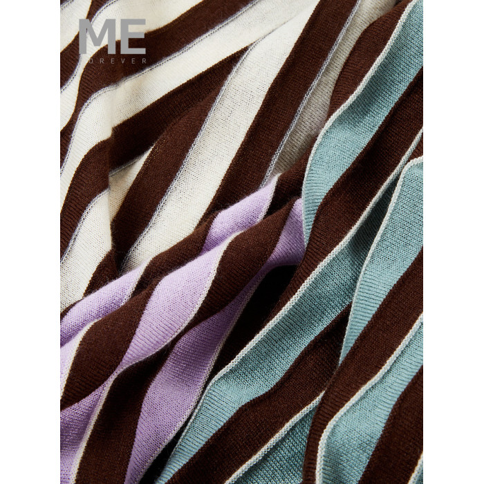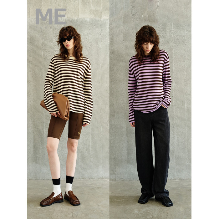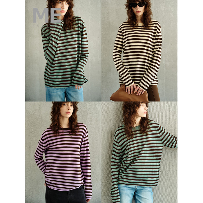 真我永恒 條紋長袖薄款針織衫春秋女新款寬松百搭圓領上衣打底衫