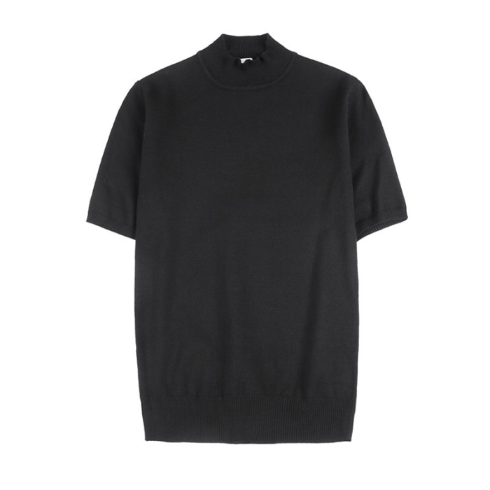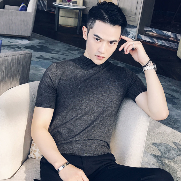 男士毛衣半高領春秋新款短袖針織衫男緊身中領純色線衣修身打底衫