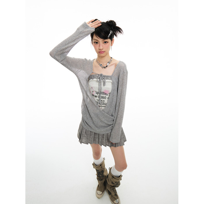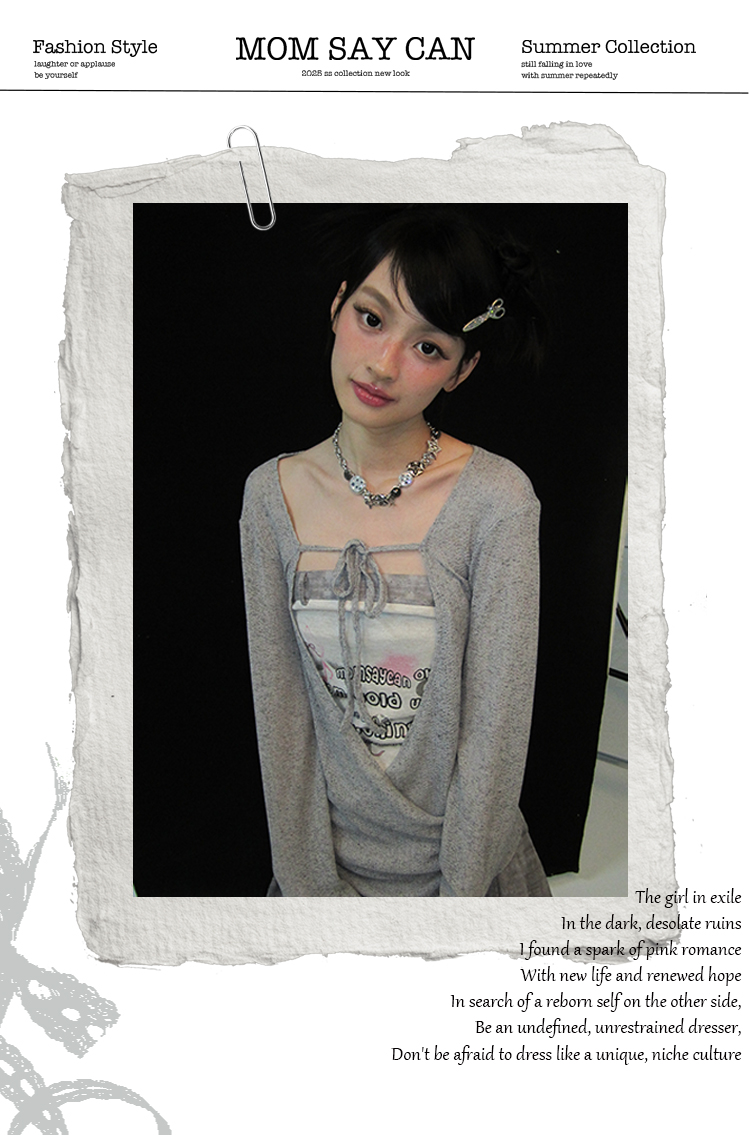 MOMSAYCAN 原創輕亞新款小衆印花抹胸連衣裙鏤空棉麻罩衫長袖