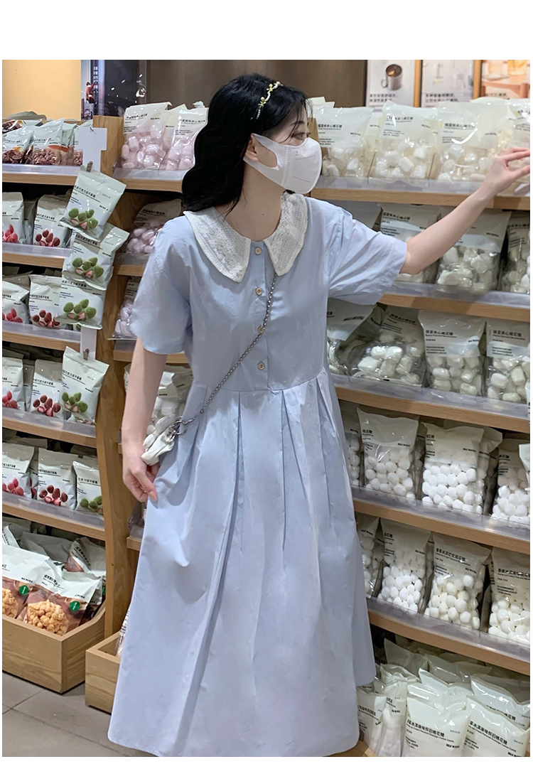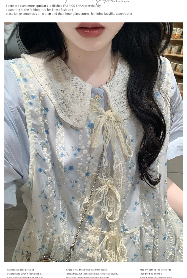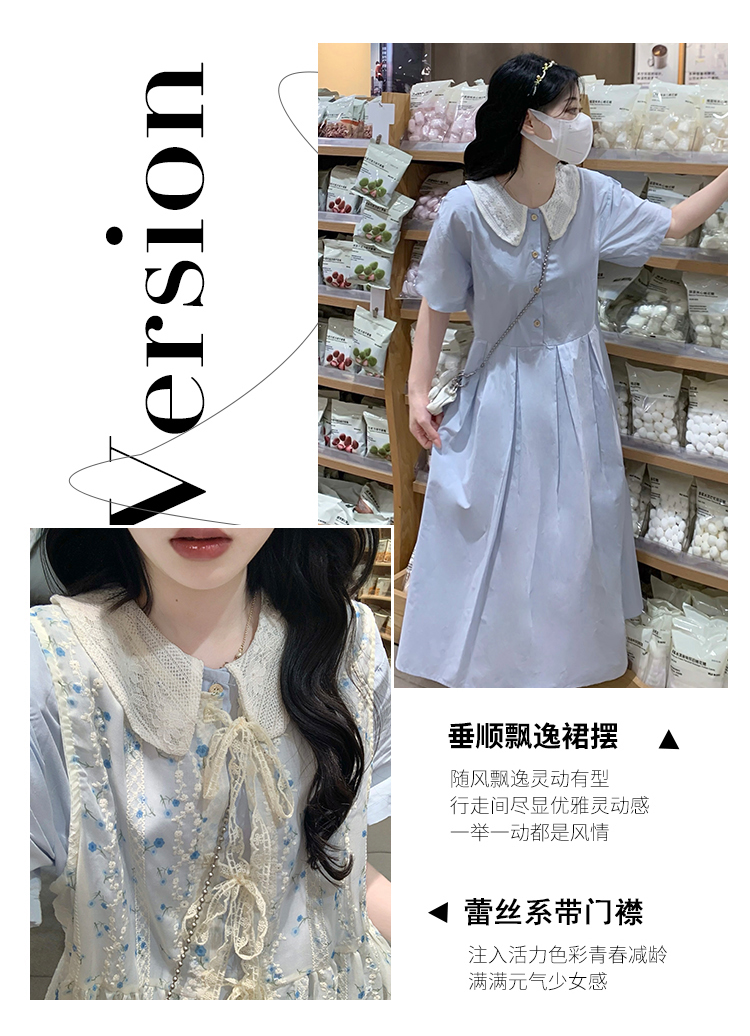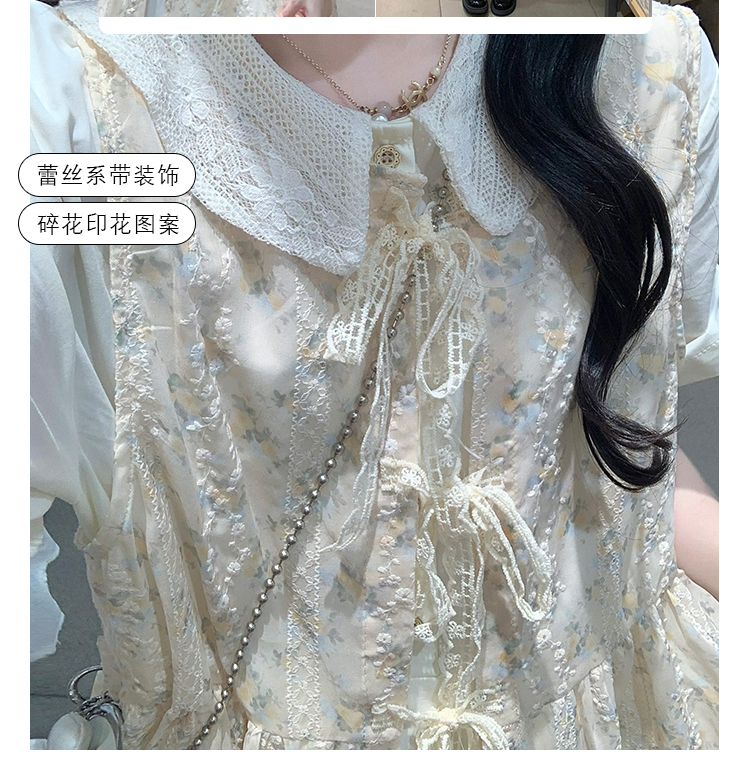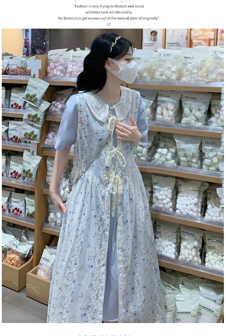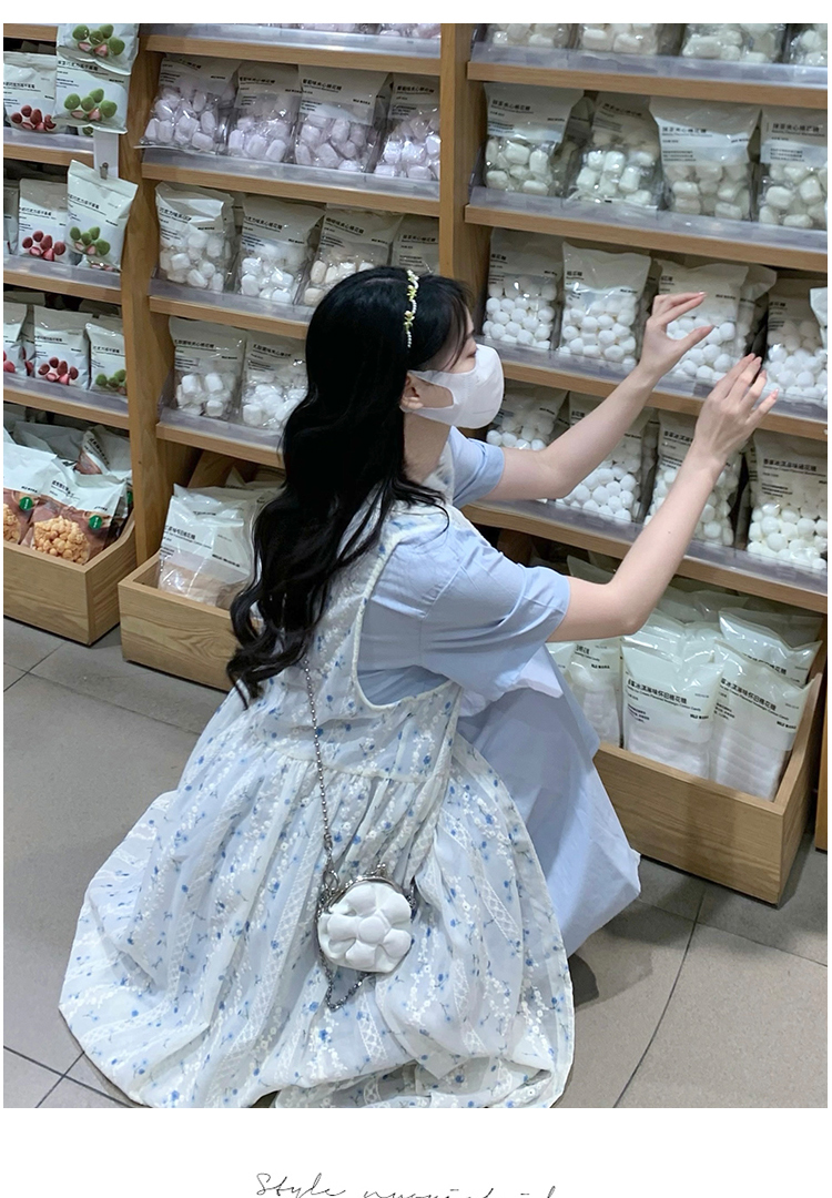 森女甜美部落2025夏季小清新套裝裙小衆短袖連衣裙罩衫曡穿兩件套