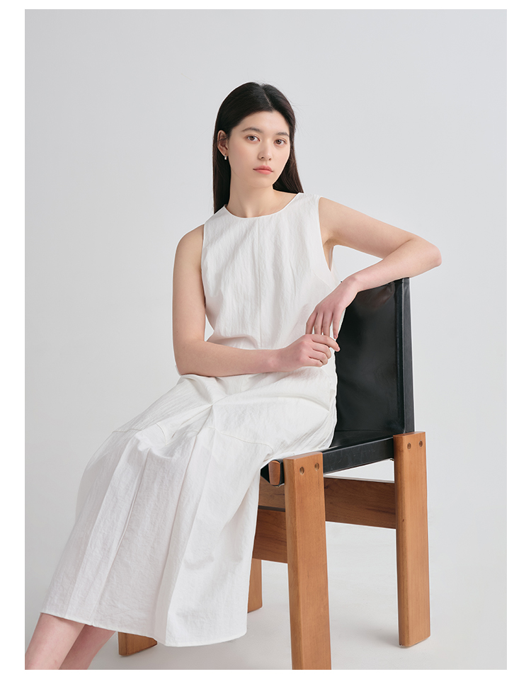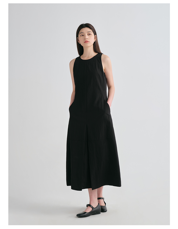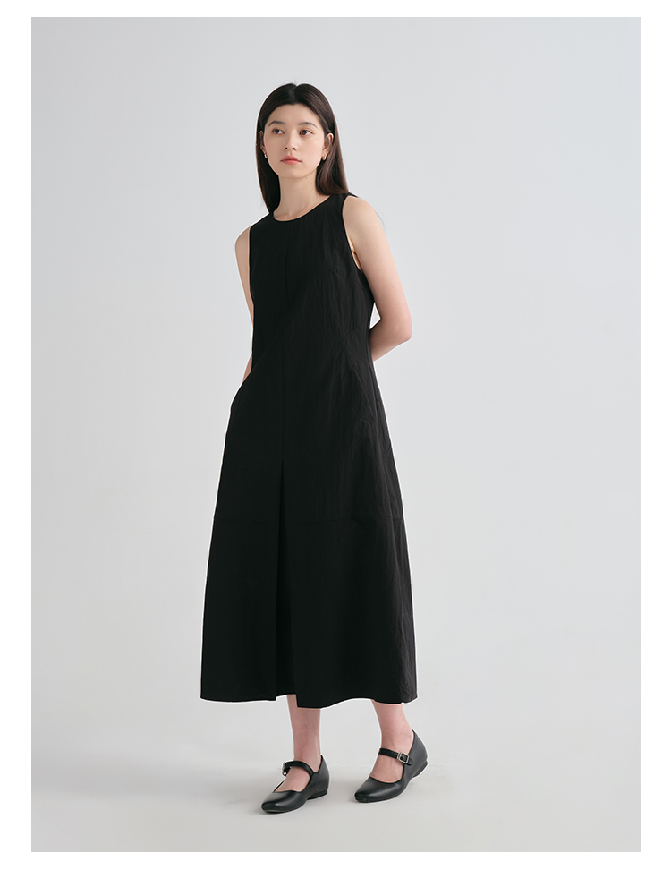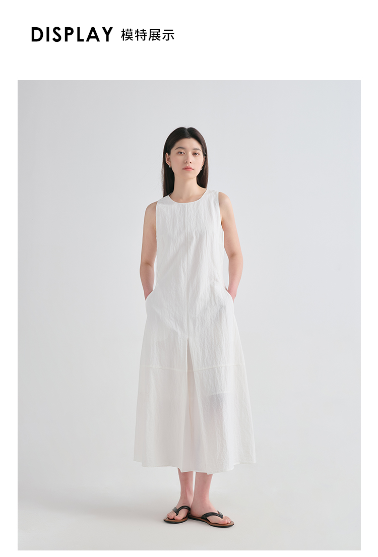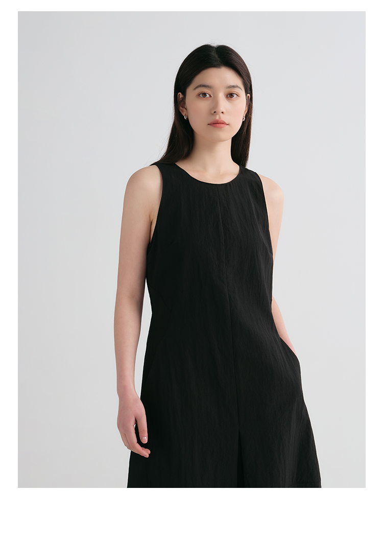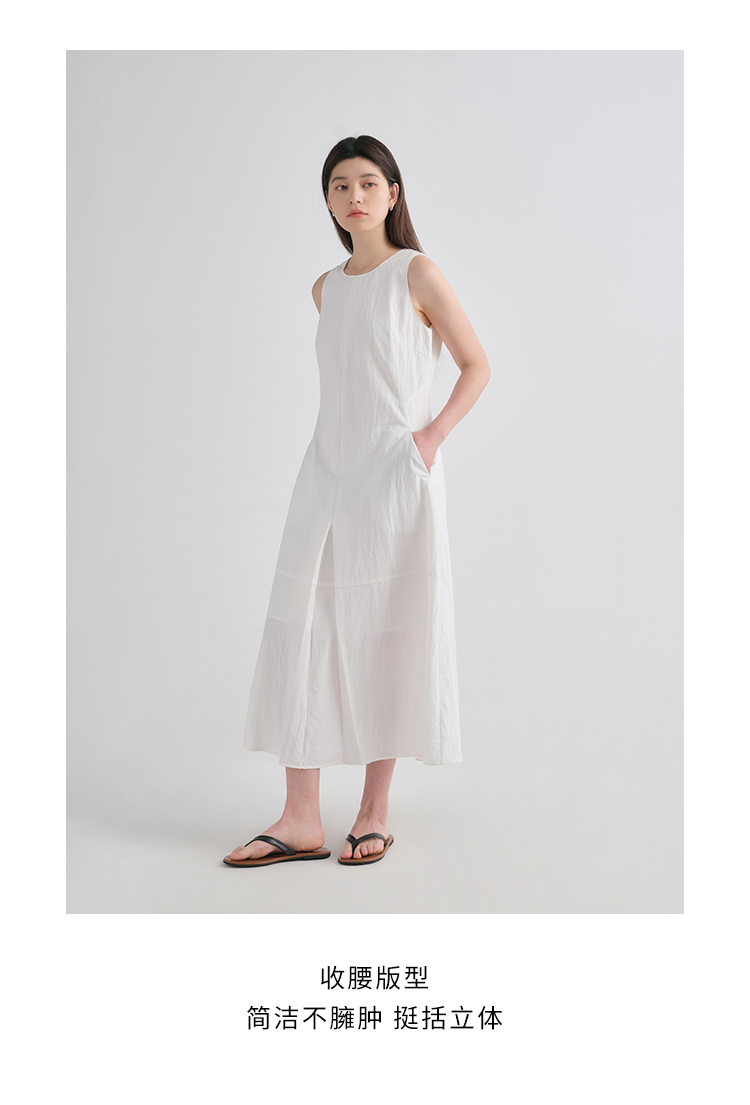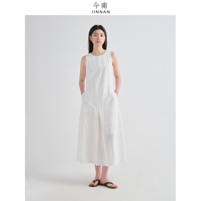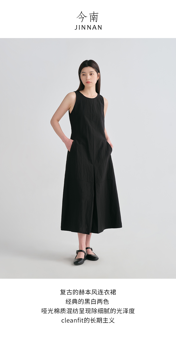 今南JINNAN 春夏簡約時尚赫本風氣質無袖收腰顯瘦背心連衣裙女
