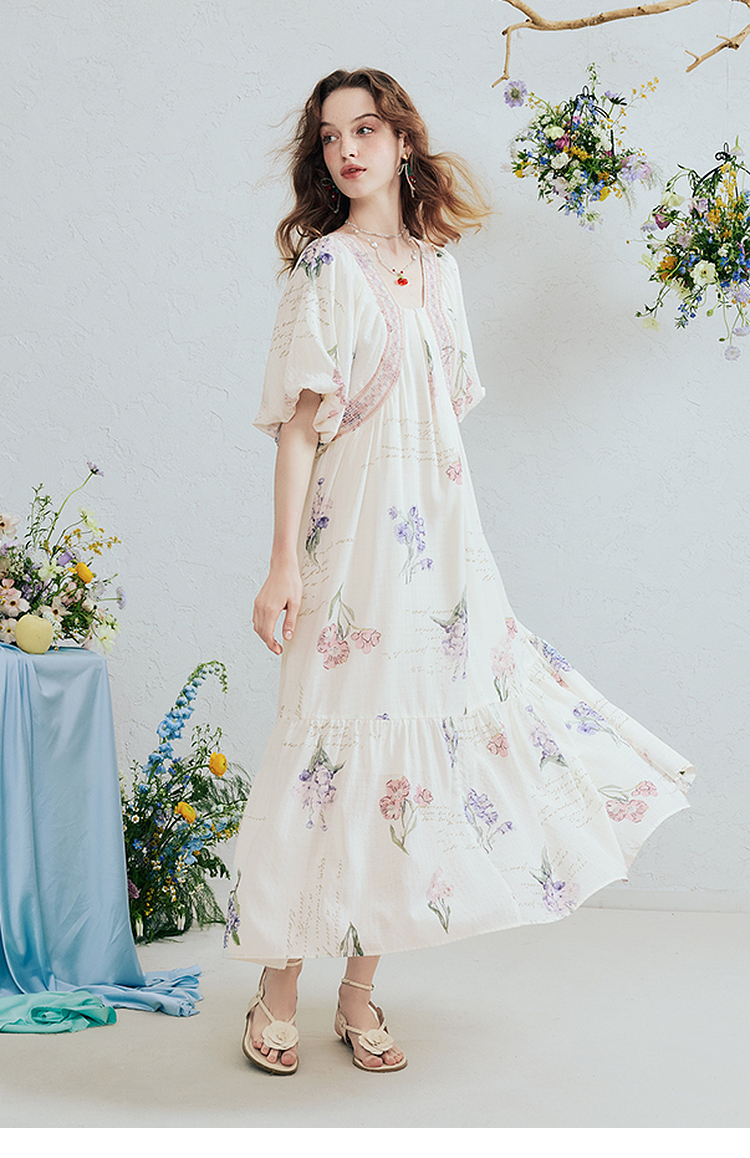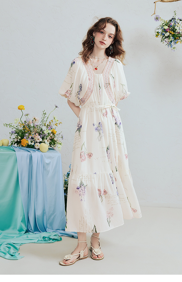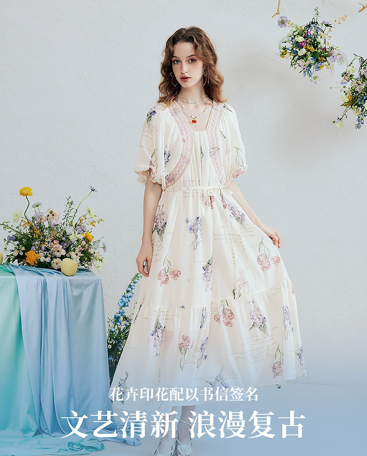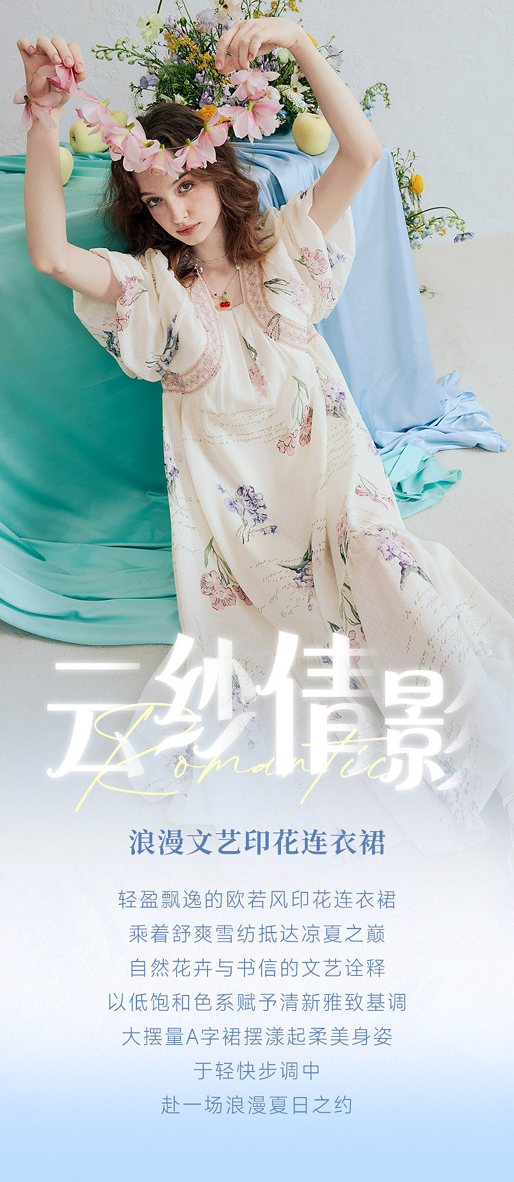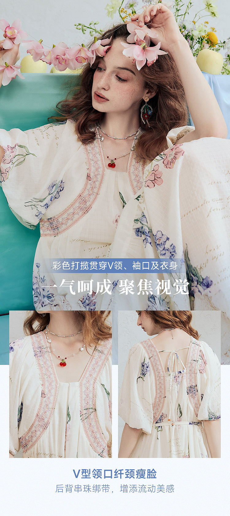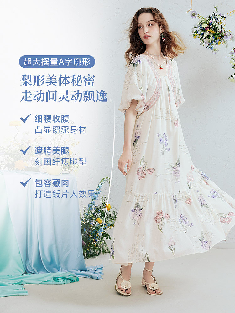 兩三事a字連衣裙女夏季2025新款度假風長裙寬松收腰裙子雲紗倩影