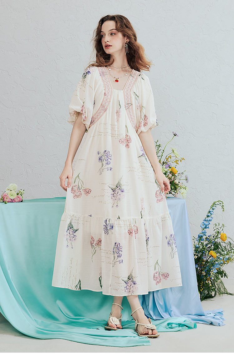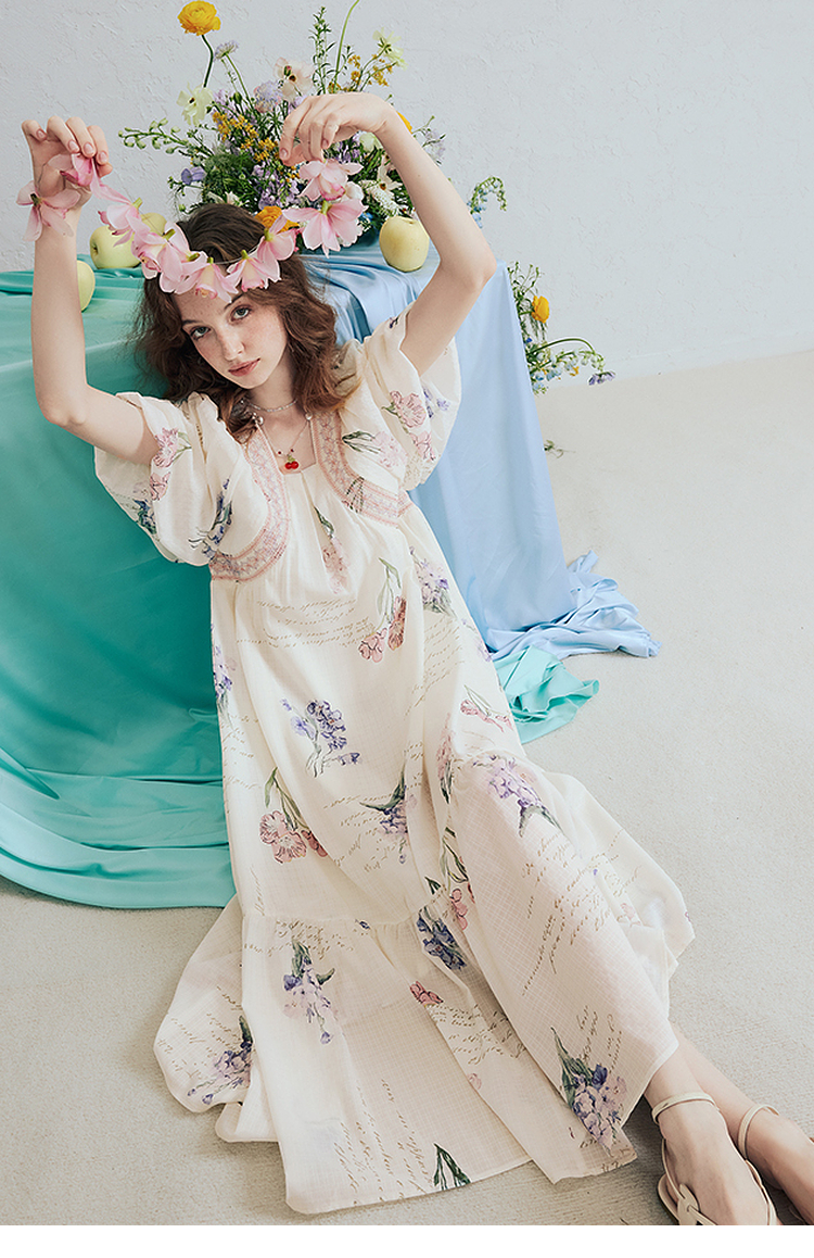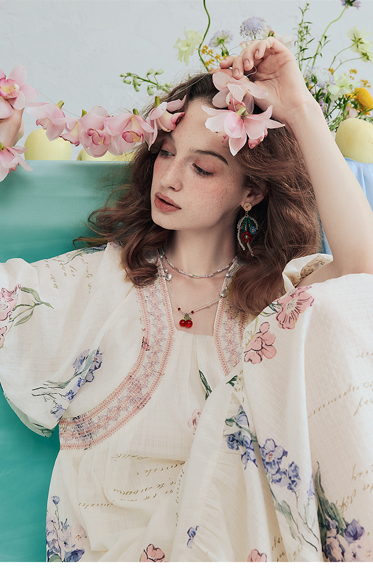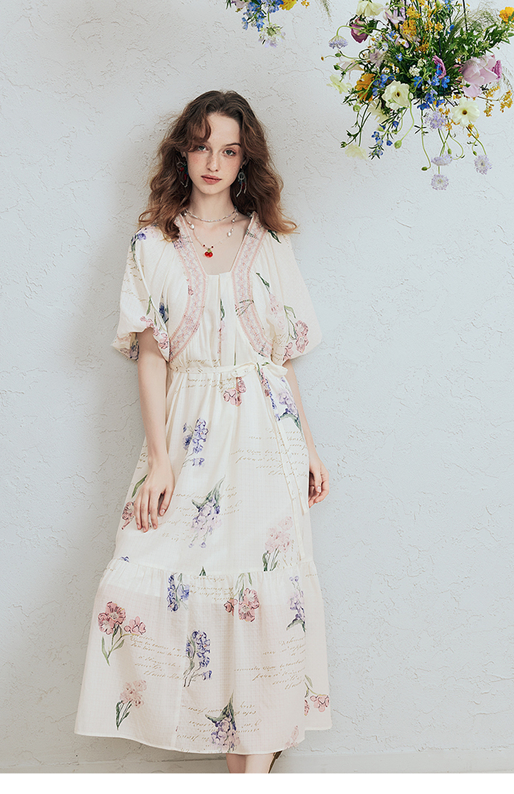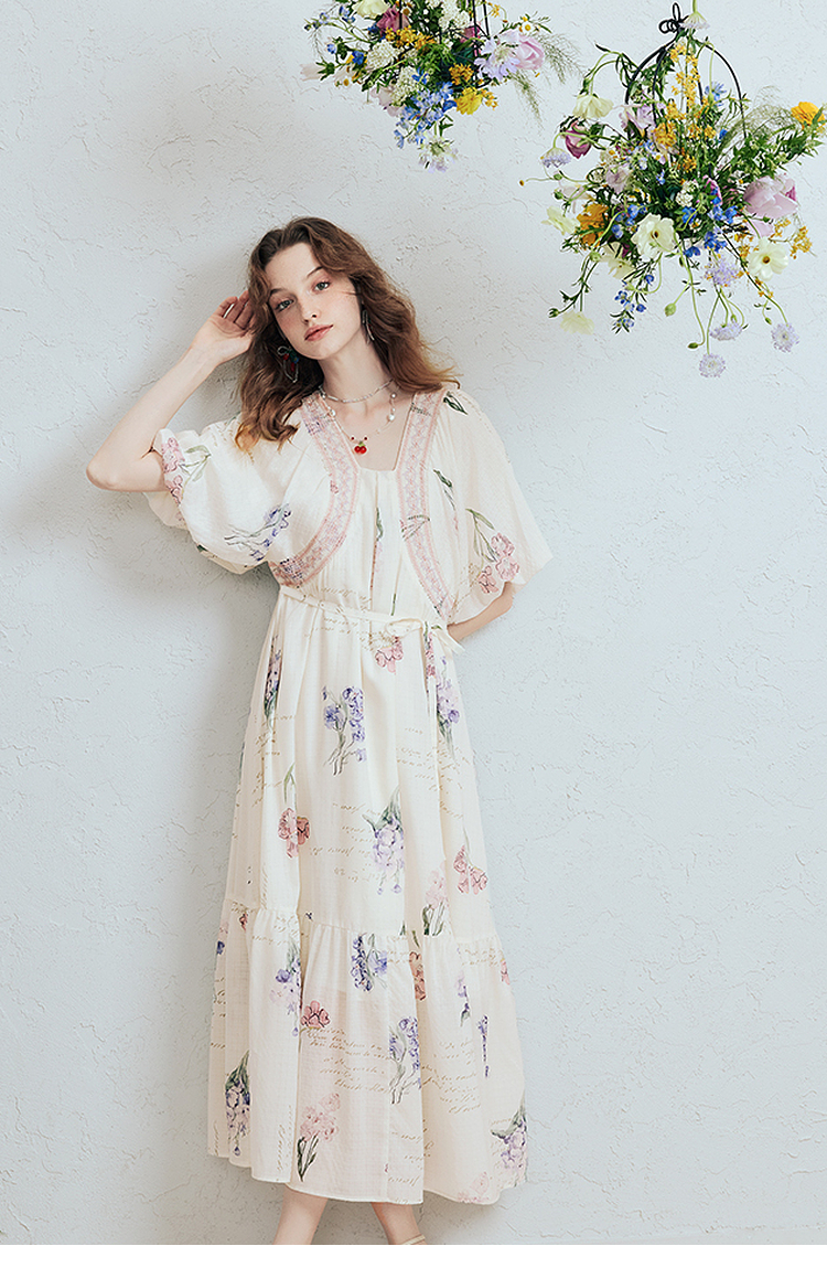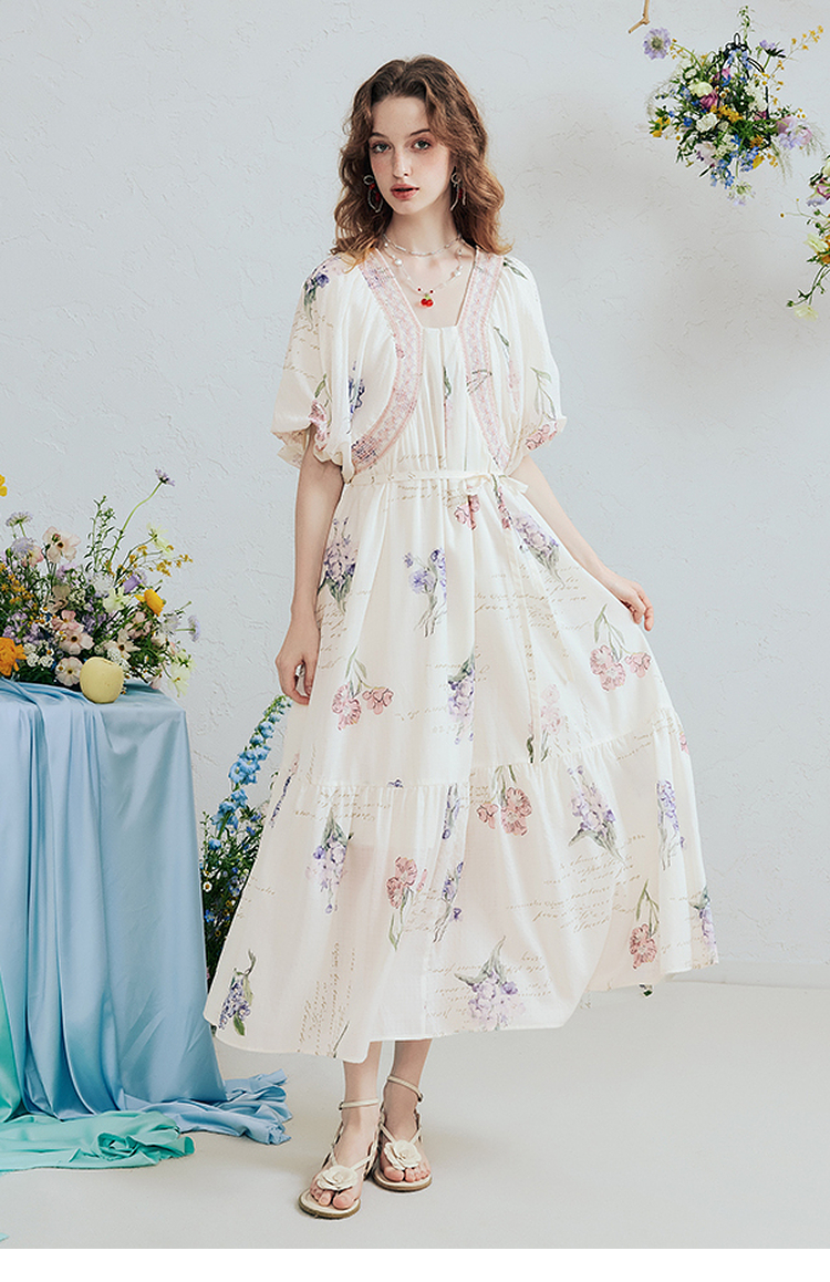 兩三事a字連衣裙女夏季2025新款度假風長裙寬松收腰裙子雲紗倩影