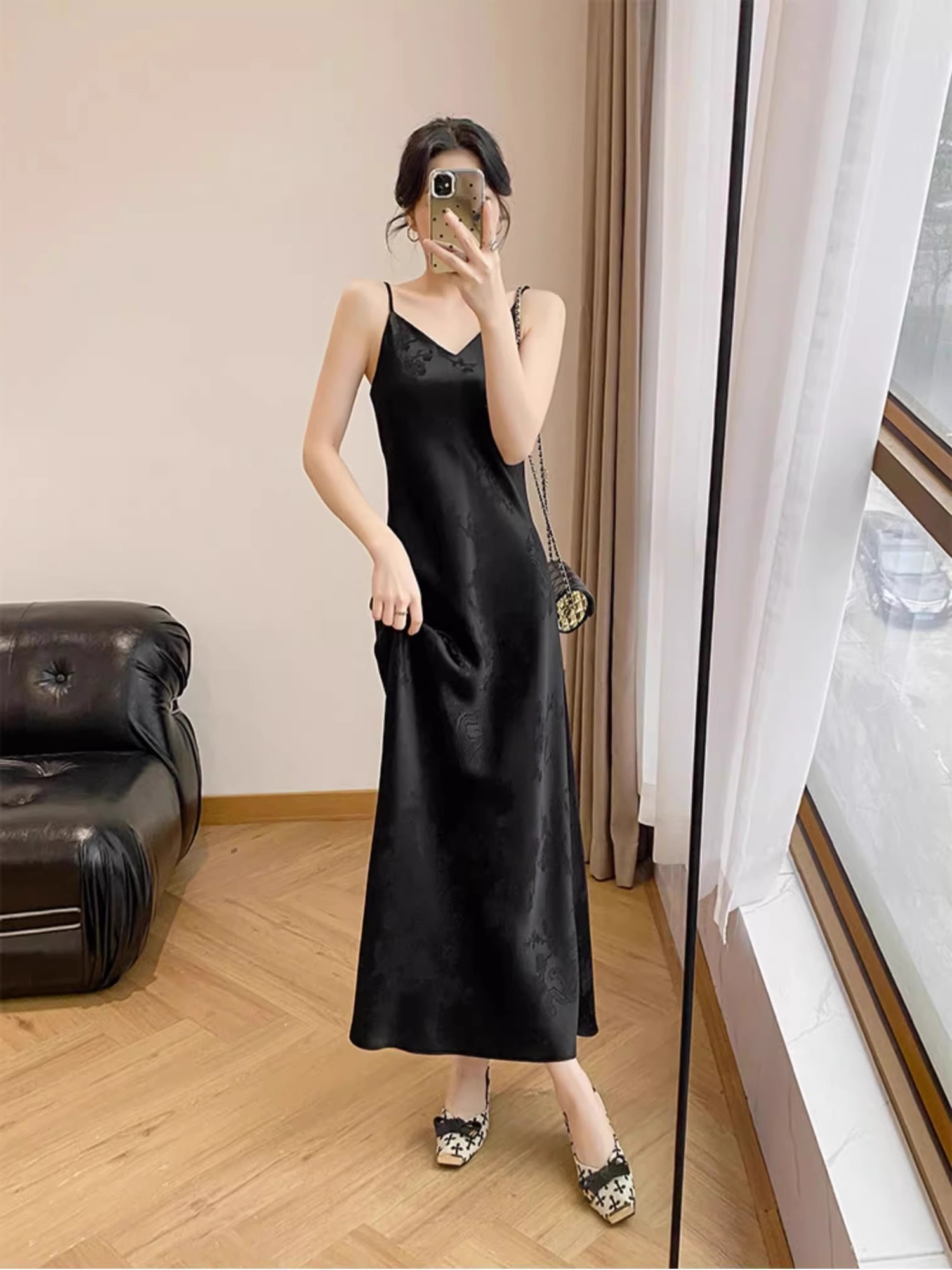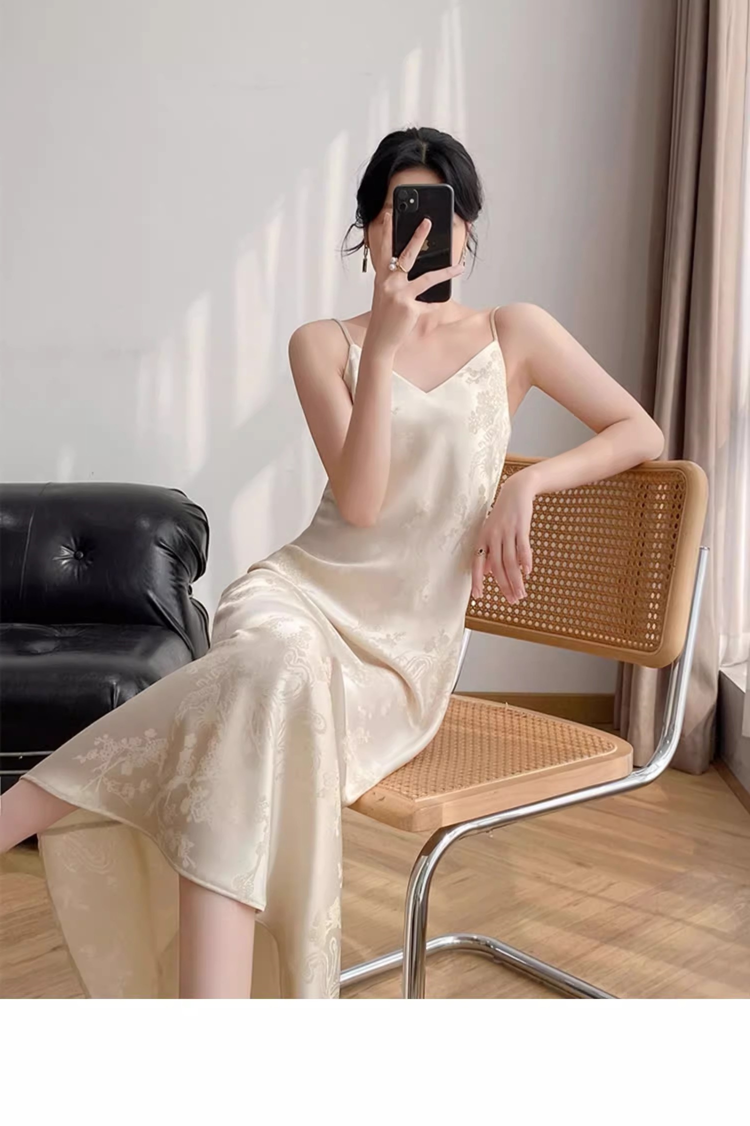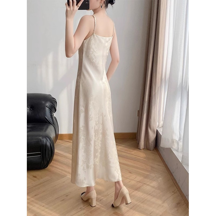 YIYUAN西裝打底內搭新中式國風垂墜感緞面醋酸吊帶連衣裙女春夏裝