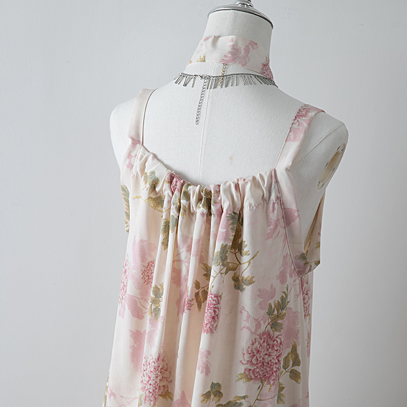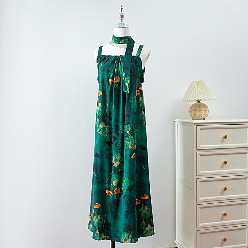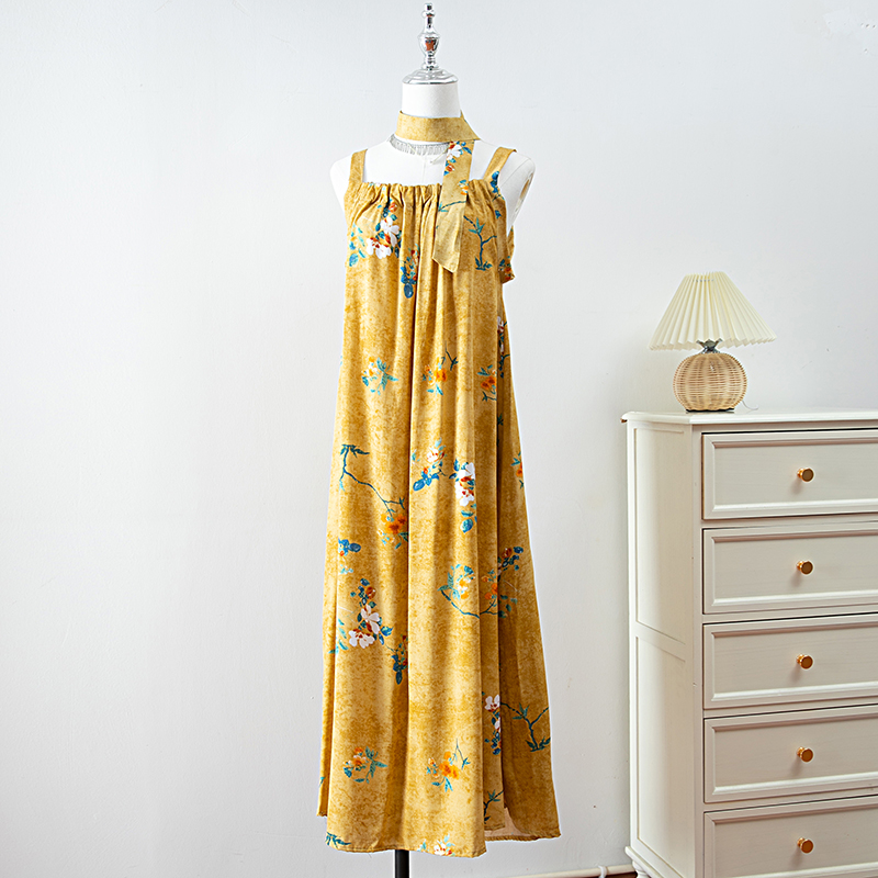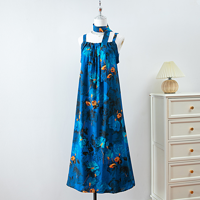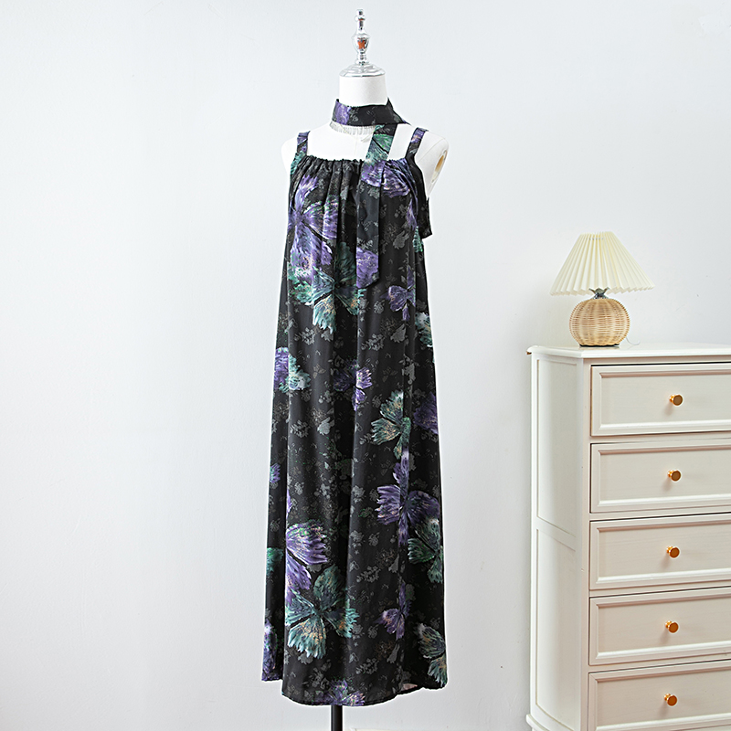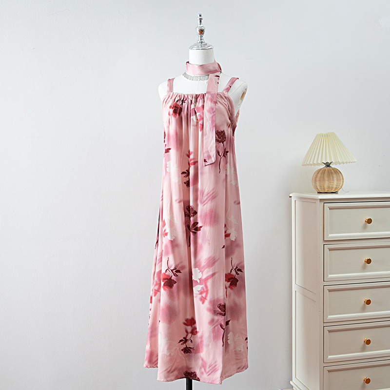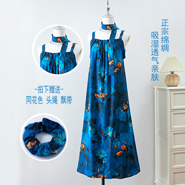 新款女夏季棉綢吊帶連衣裙2025新款氣質顯瘦印花寬松時尚碎花長裙
