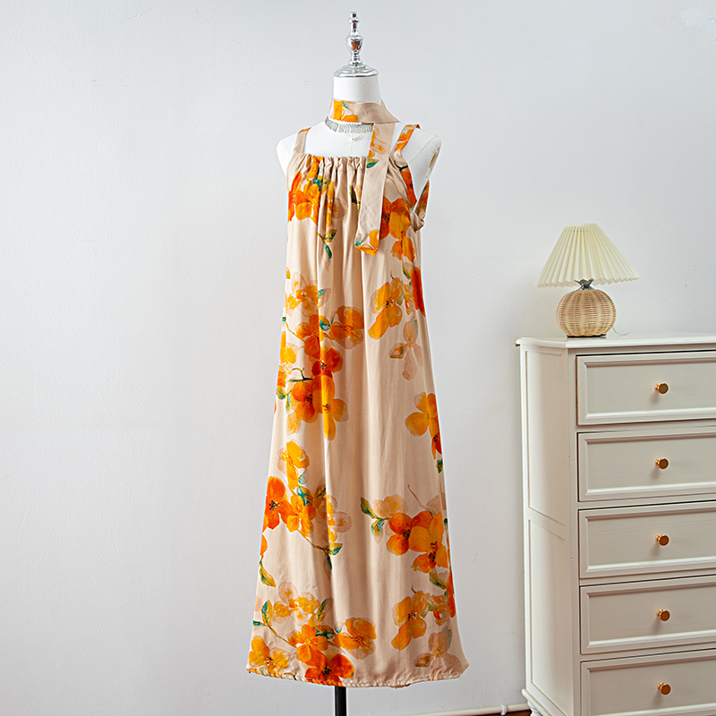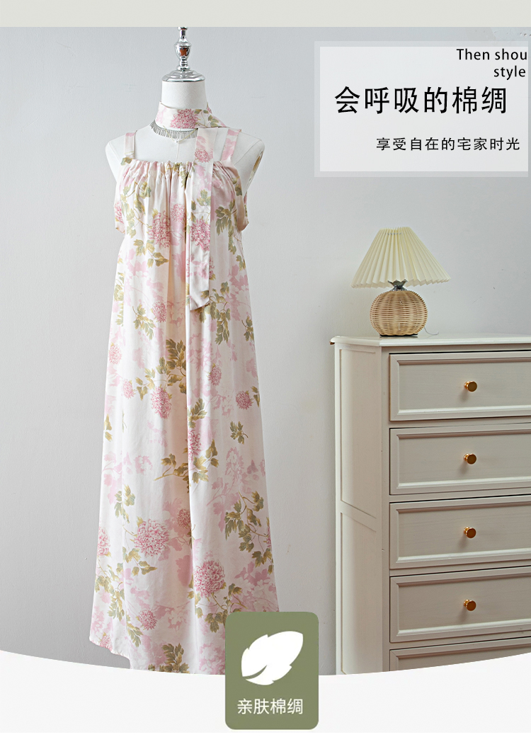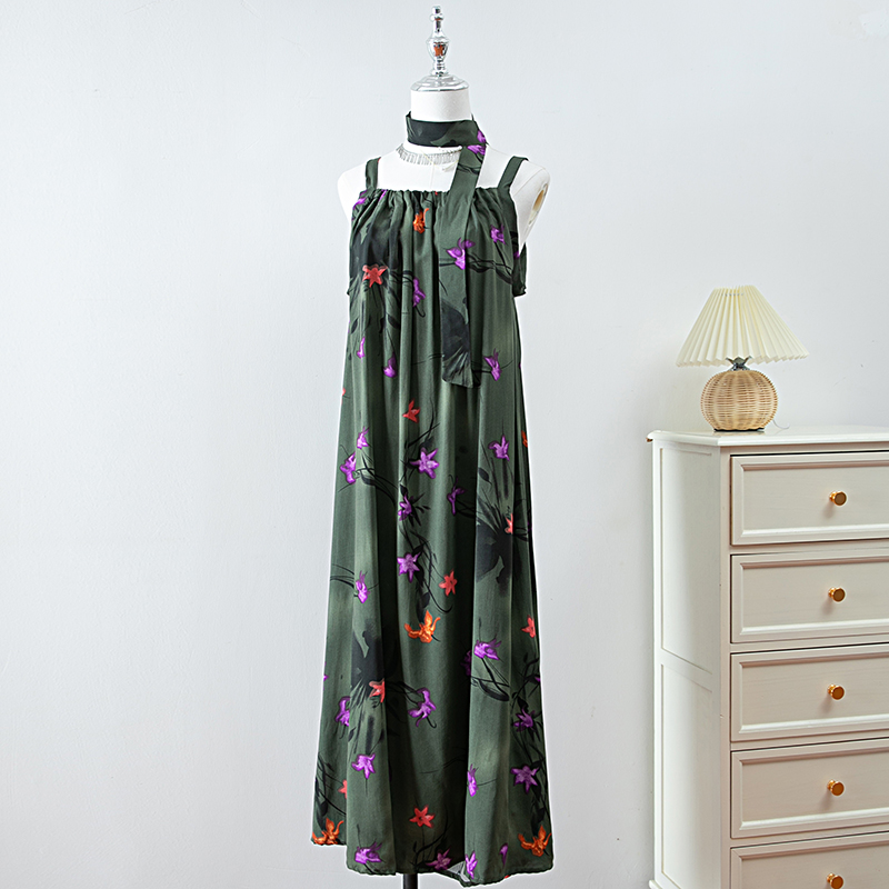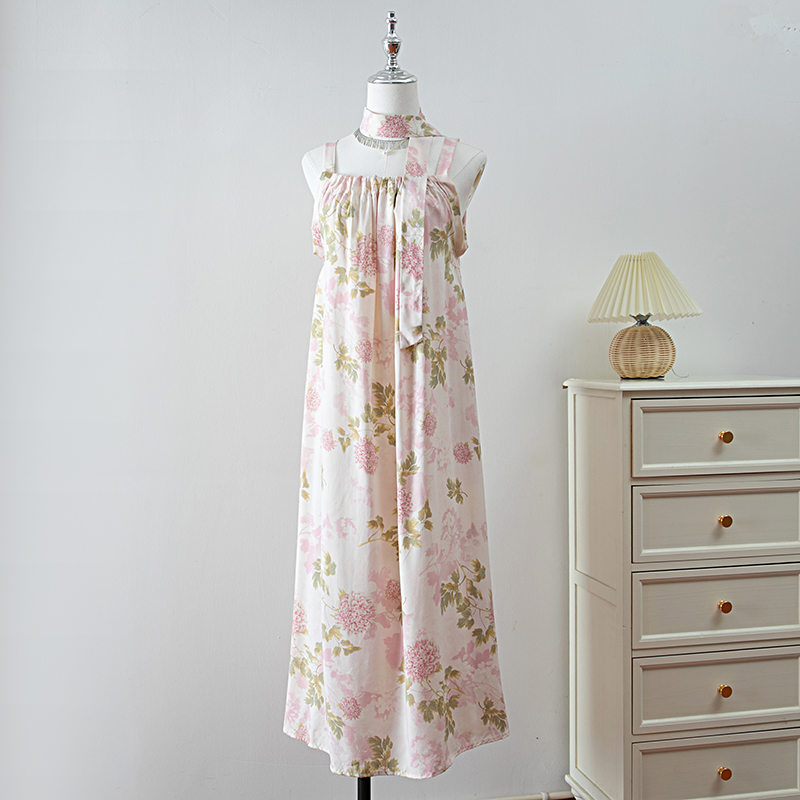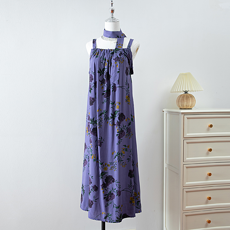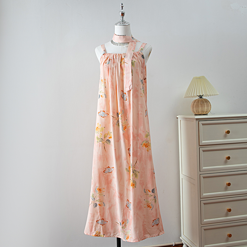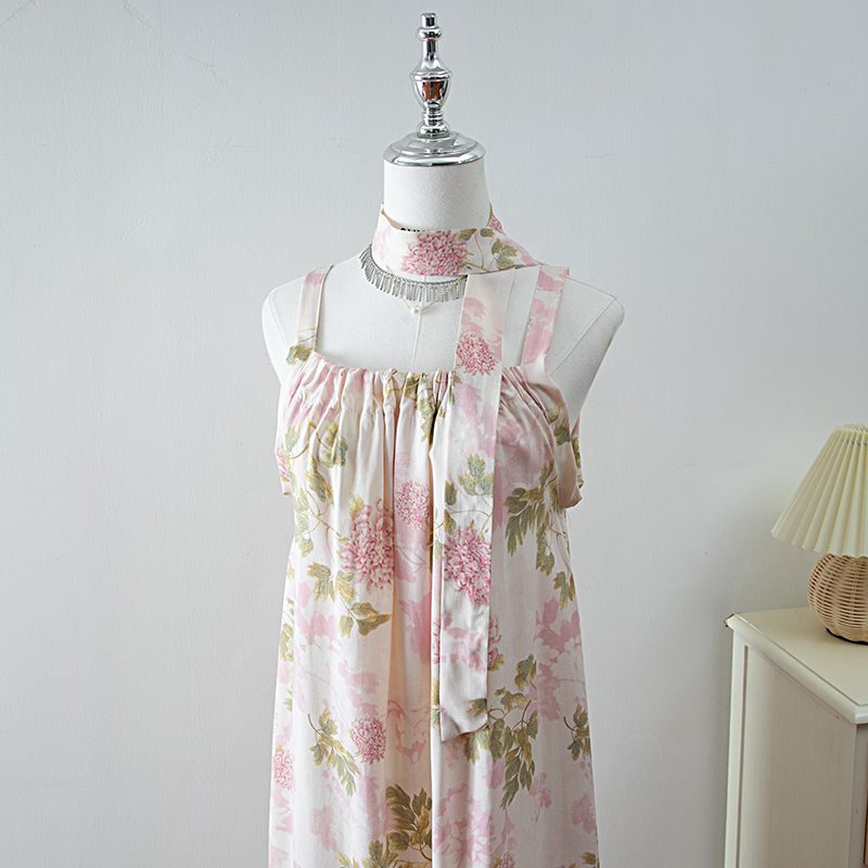 新款女夏季棉綢吊帶連衣裙2025新款氣質顯瘦印花寬松時尚碎花長裙