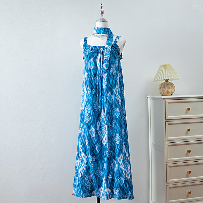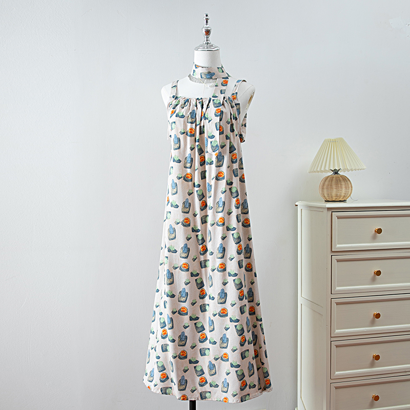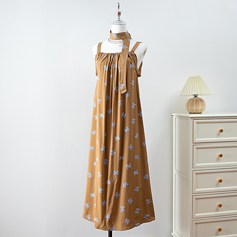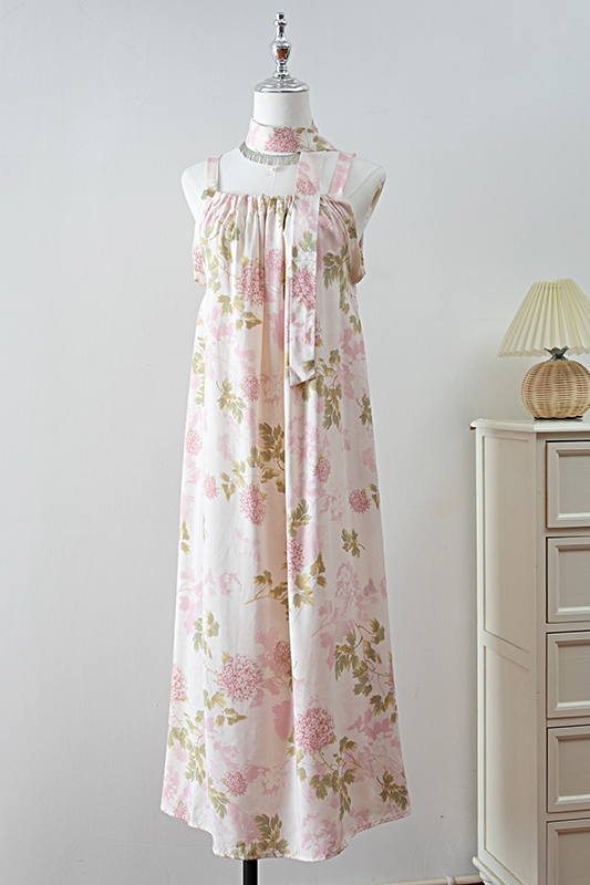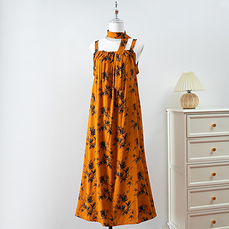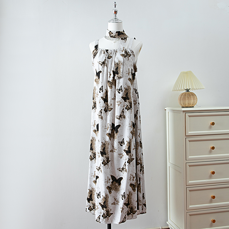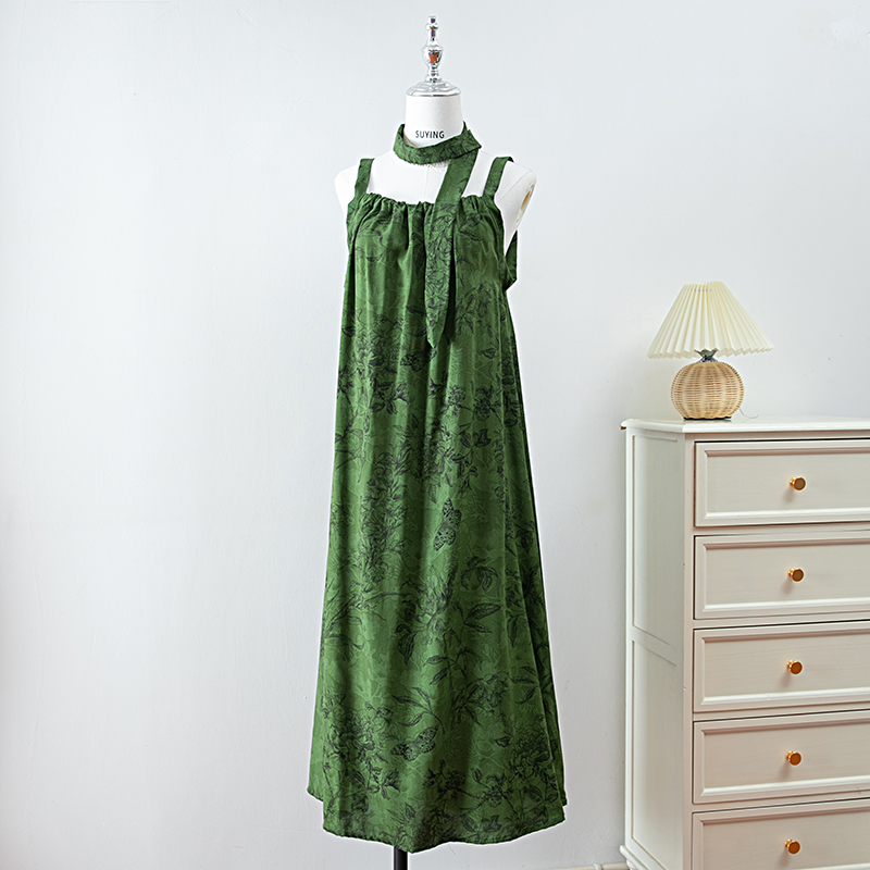 新款女夏季棉綢吊帶連衣裙2025新款氣質顯瘦印花寬松時尚碎花長裙
