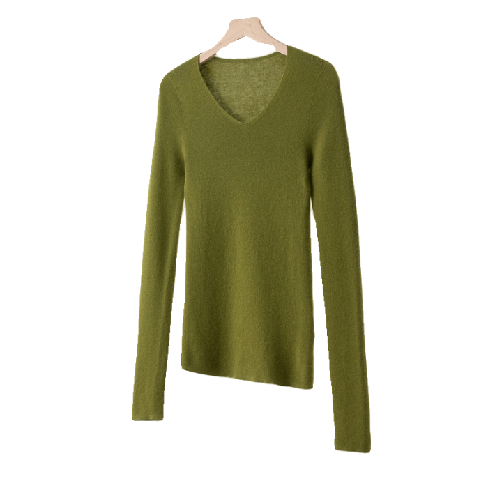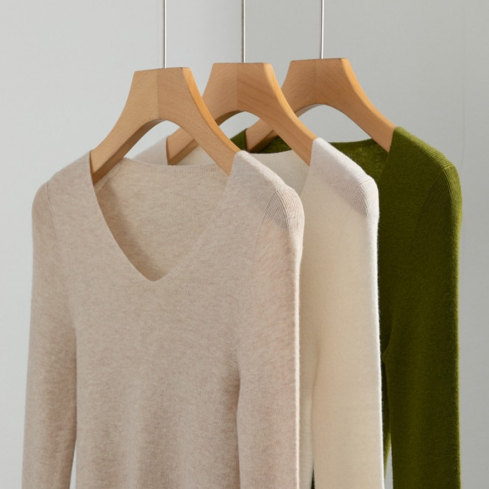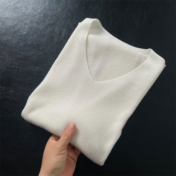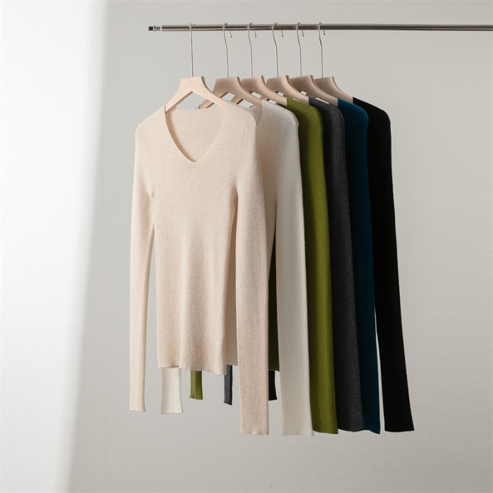 一線成衣無縫精紡100細羊毛V領針織打底衫女修身顯瘦氣質通勤內搭