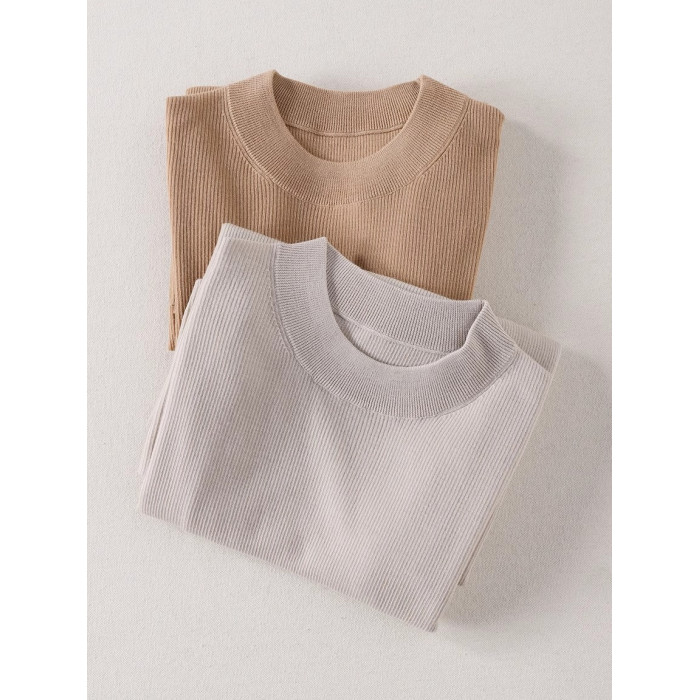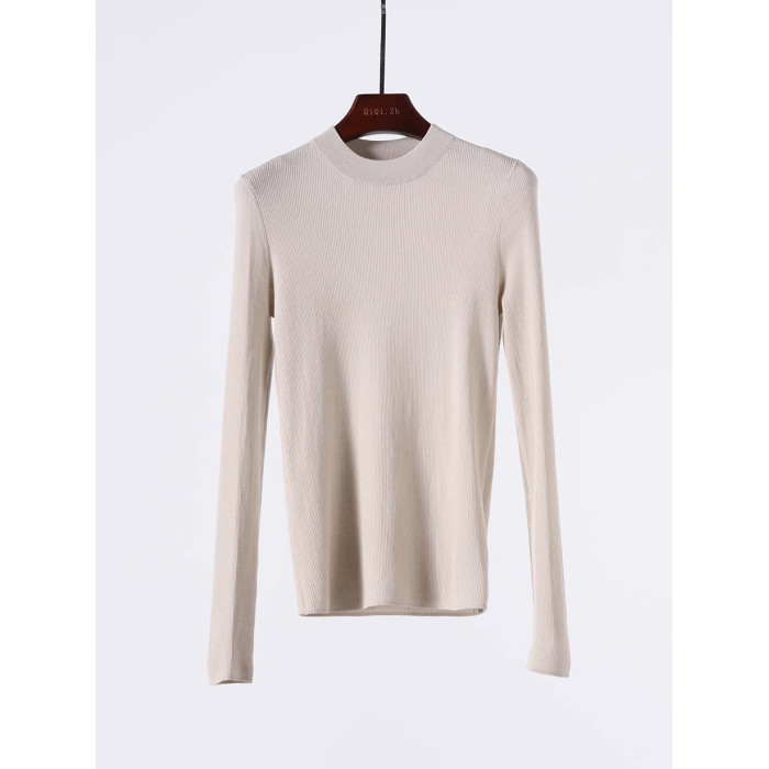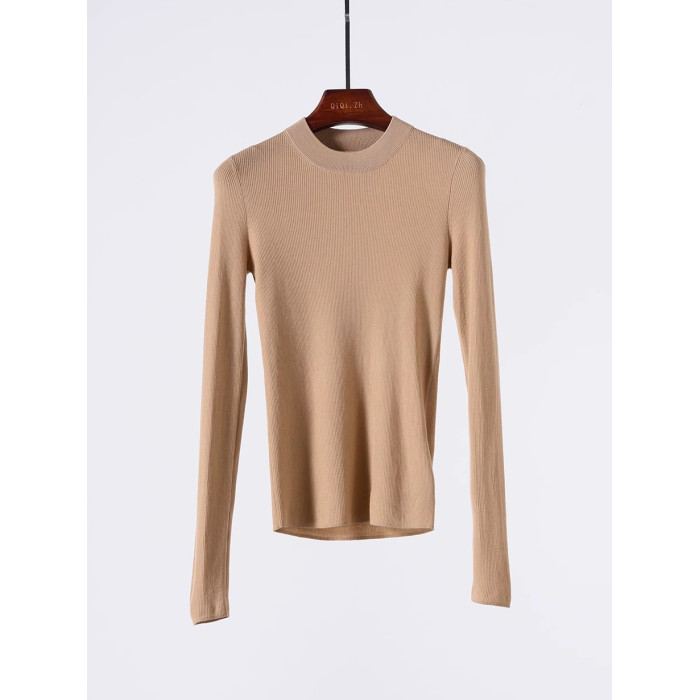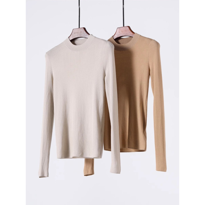 素雅舒適 加密雙股超細精紡羊圓領修身針織打底衫