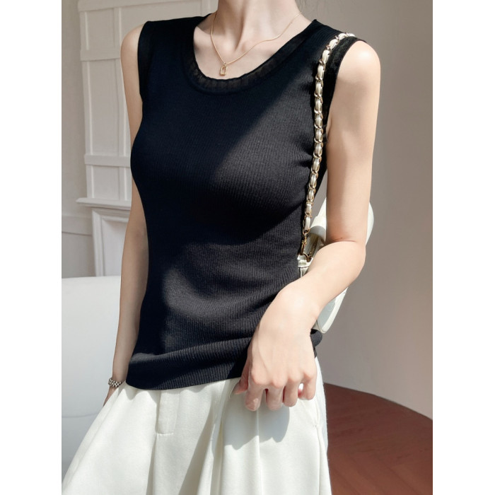 黑色(花邊無袖背心A90)