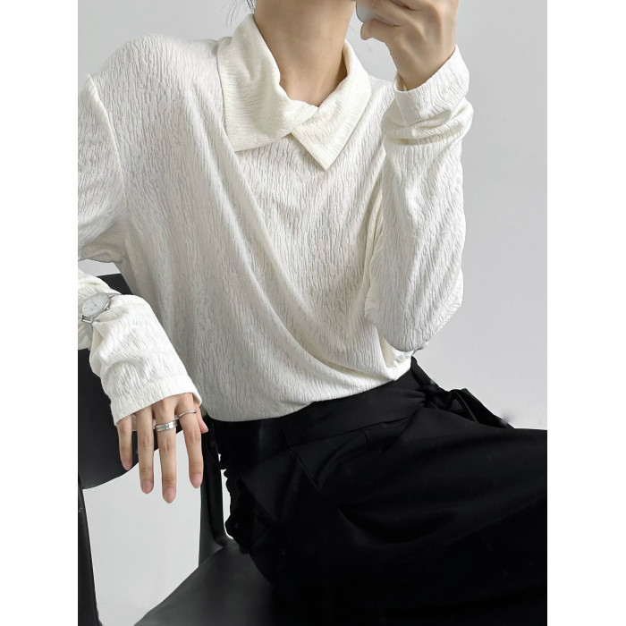 ASAE Le風肌理感垂感襯衣寬松男女中性風翻領長袖打底衫