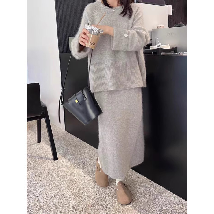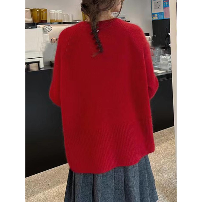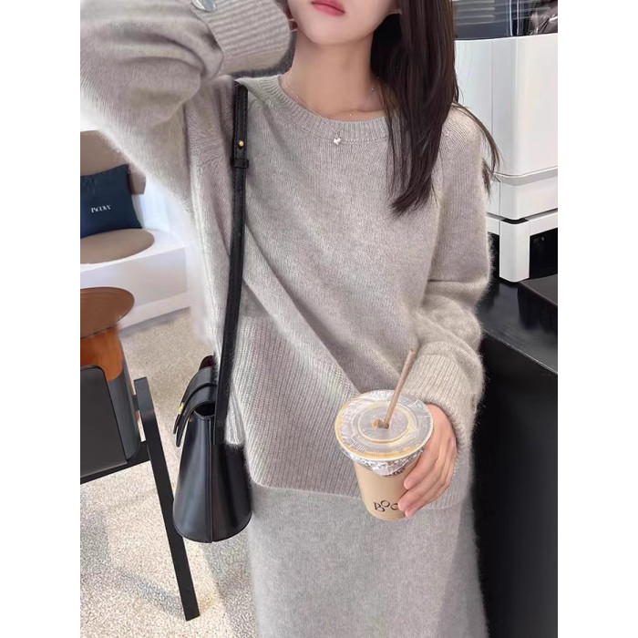 圓領套頭慵懶寬松百搭羊絨毛衣女秋冬新款休閒純色羊毛針織打底衫