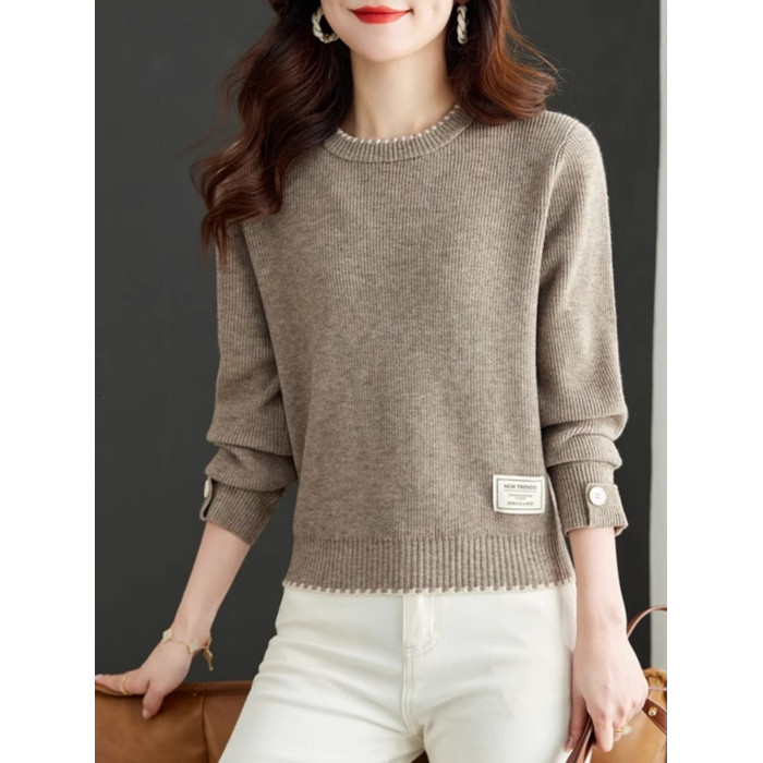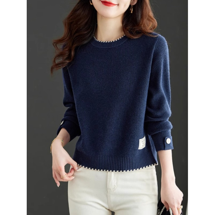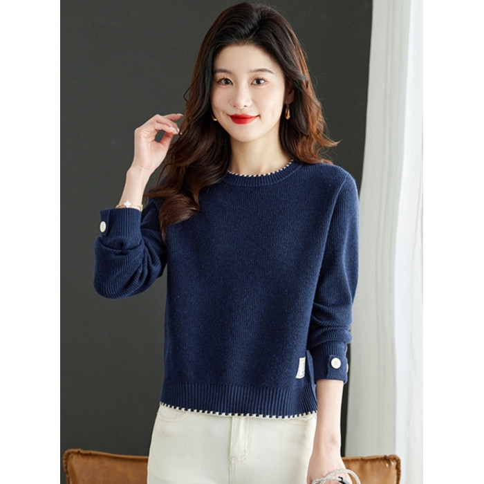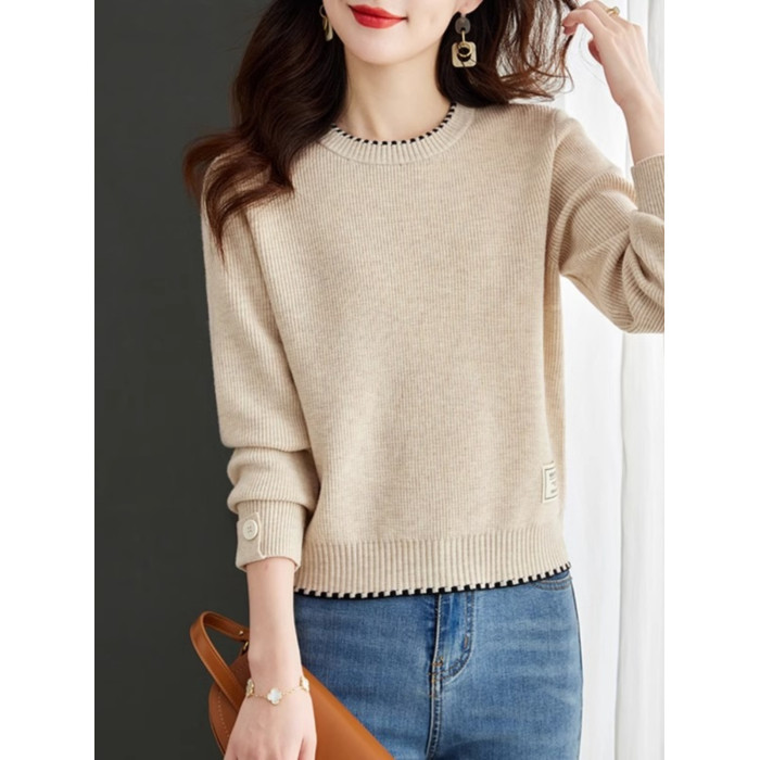 秋冬裝圓領純色針織衫內搭女短款套頭毛衣韓版寬松打底衫長袖百搭