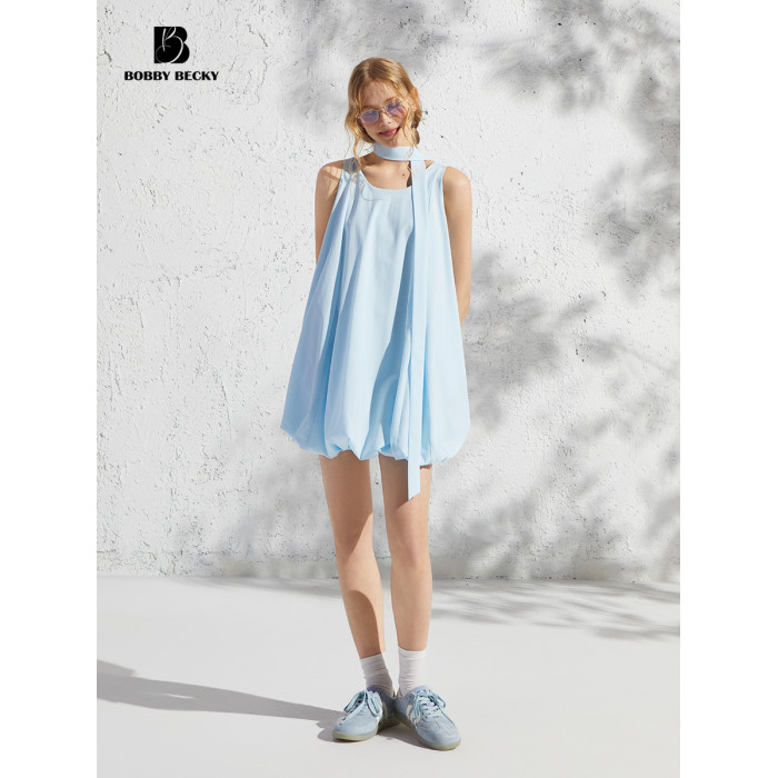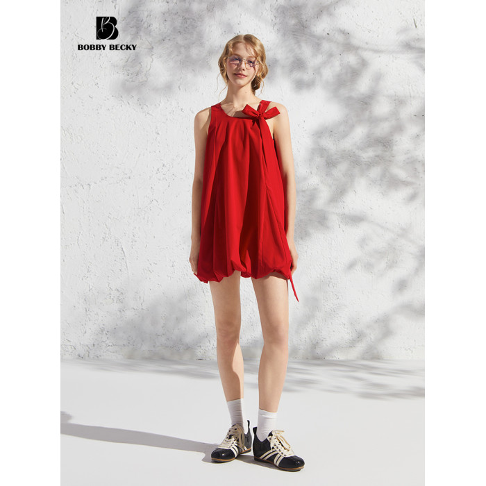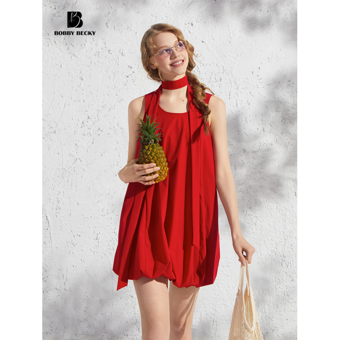 Bobbybecky甜美復古紅色花苞大U領無袖連衣裙