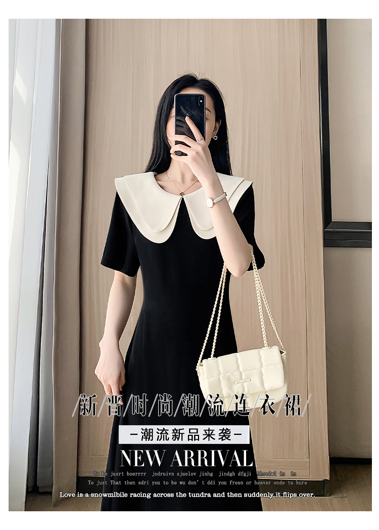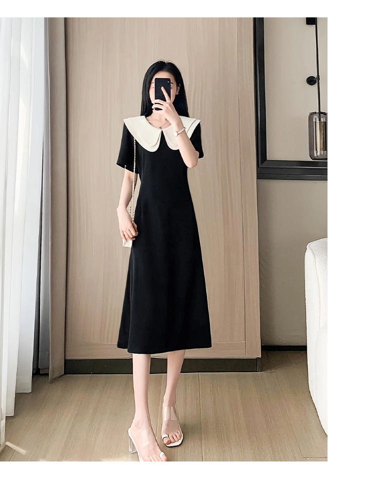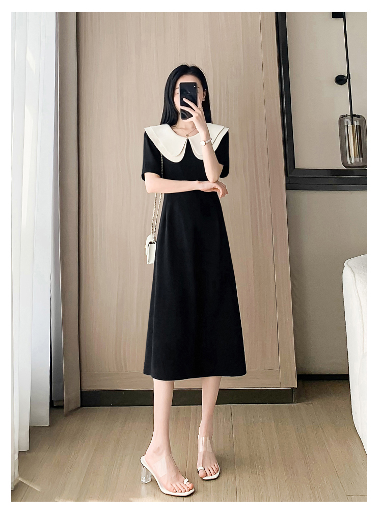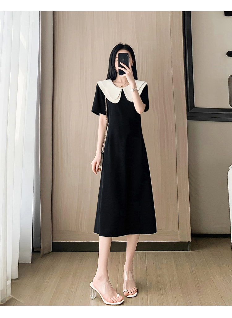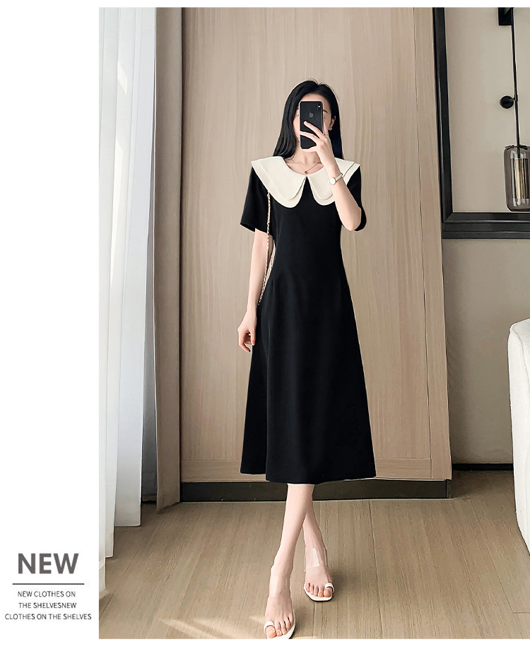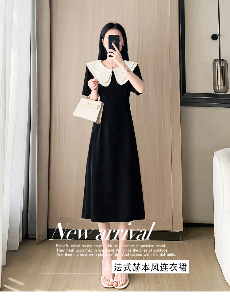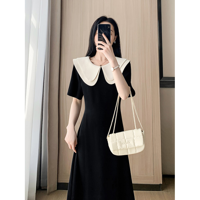 法式赫本風黑色連衣裙女夏2025新款高級感收腰顯瘦娃娃領a字裙子