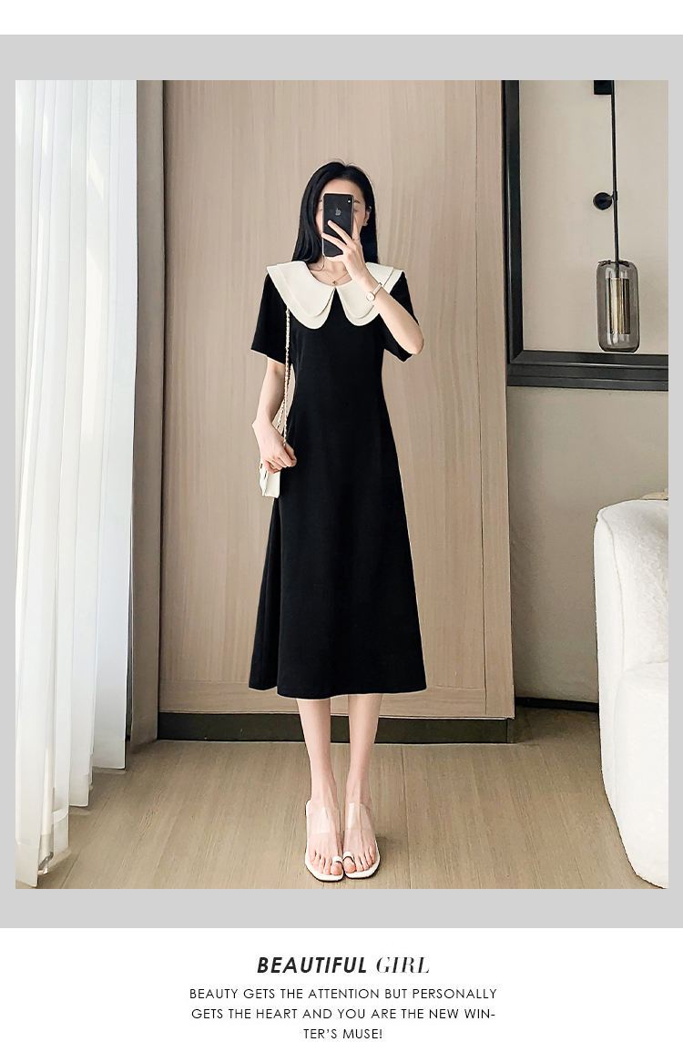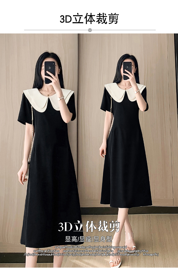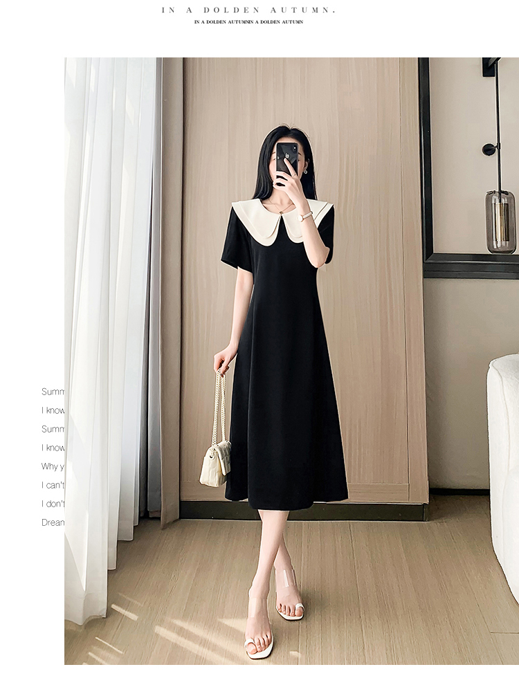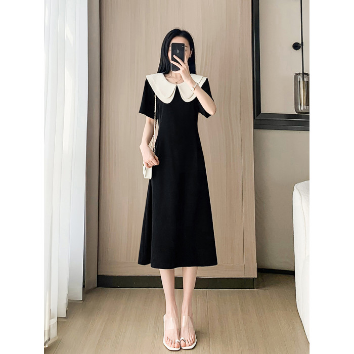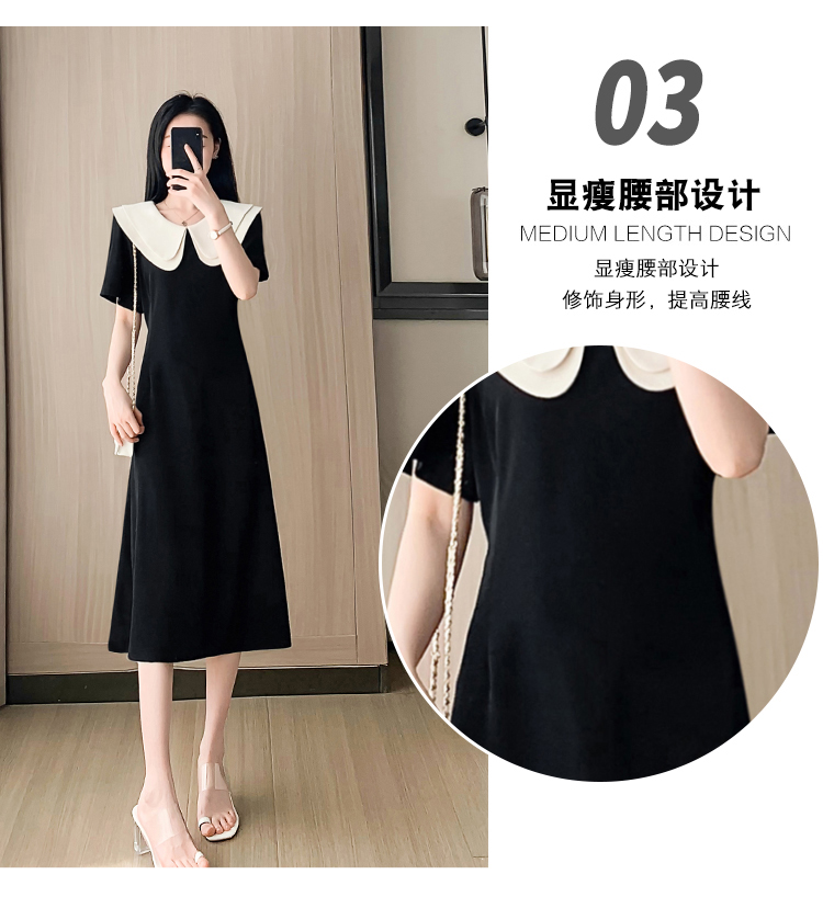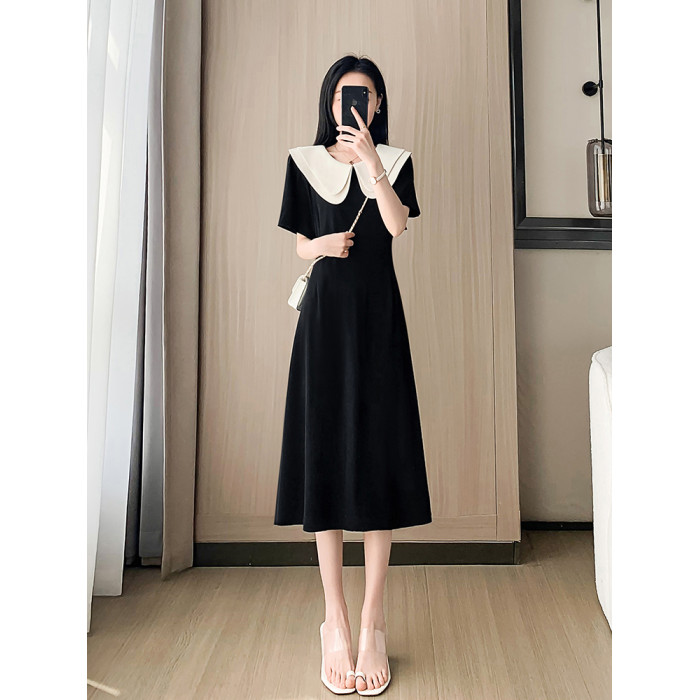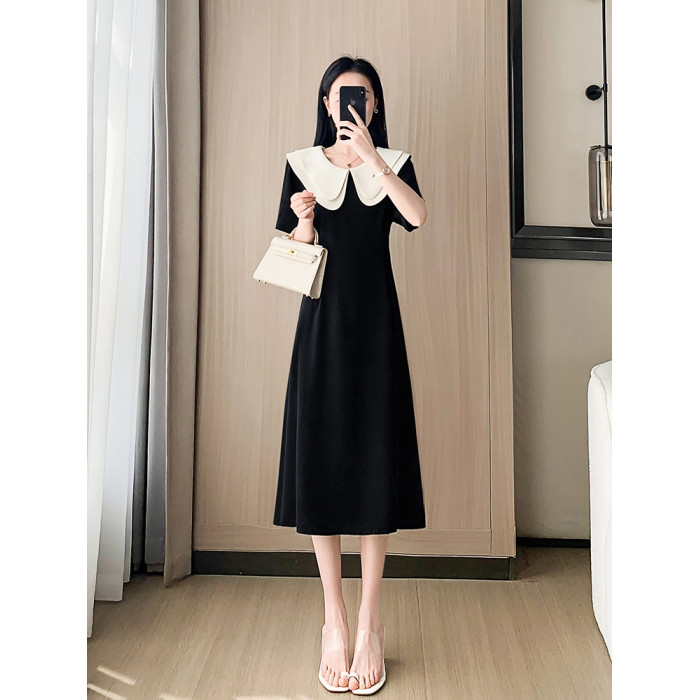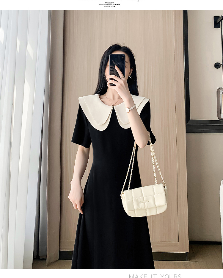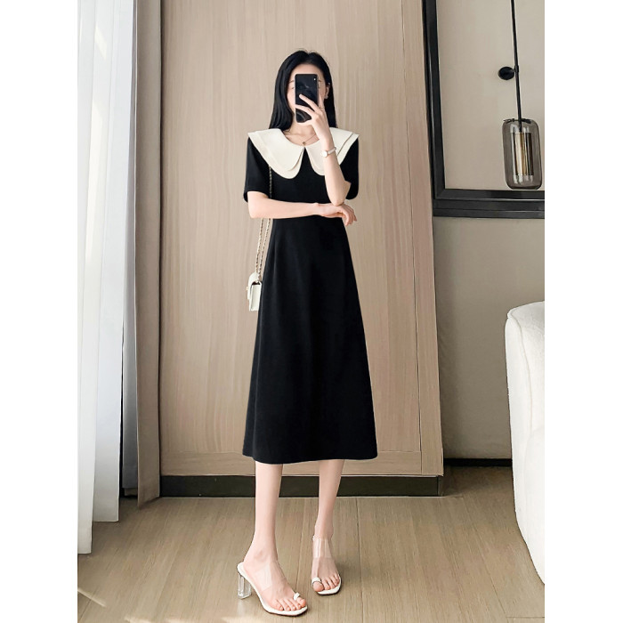 法式赫本風黑色連衣裙女夏2025新款高級感收腰顯瘦娃娃領a字裙子
