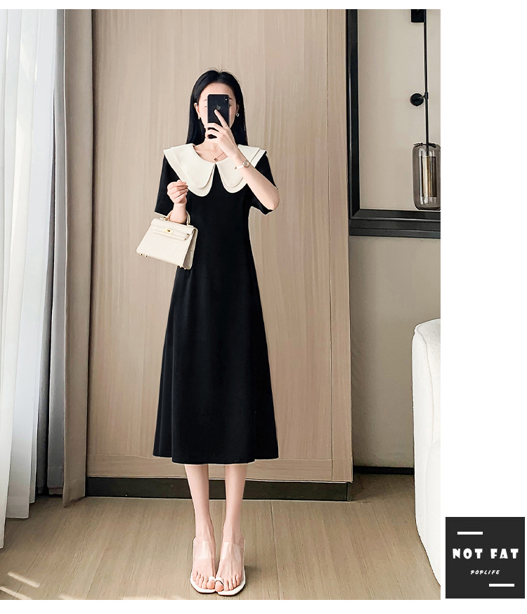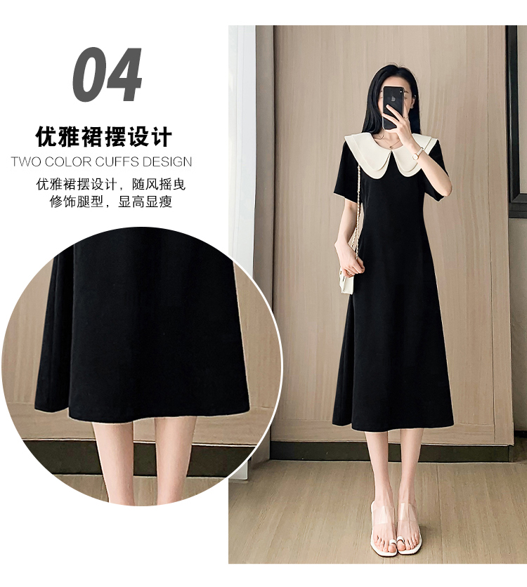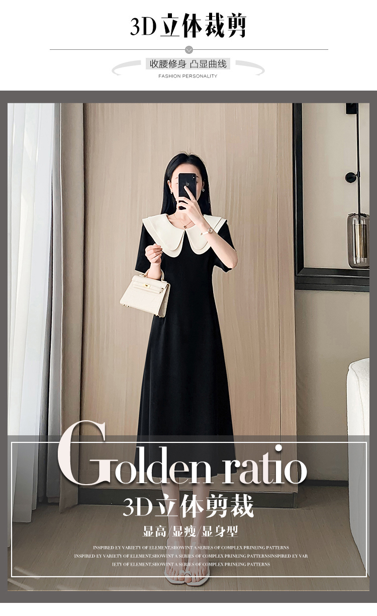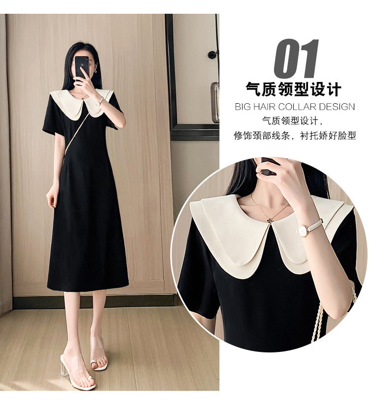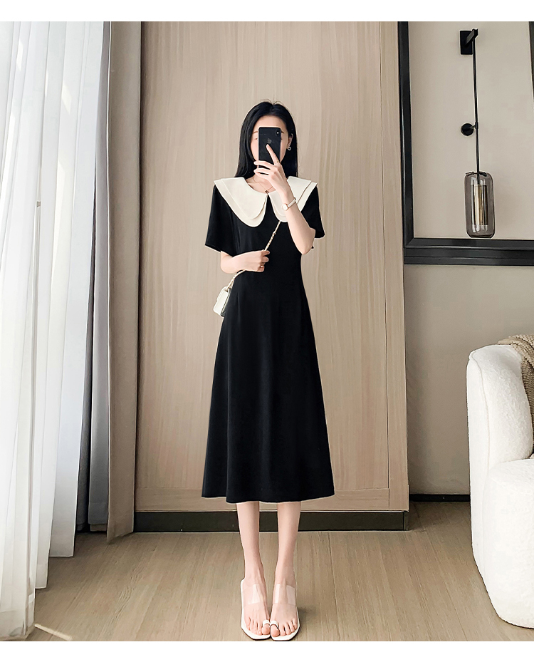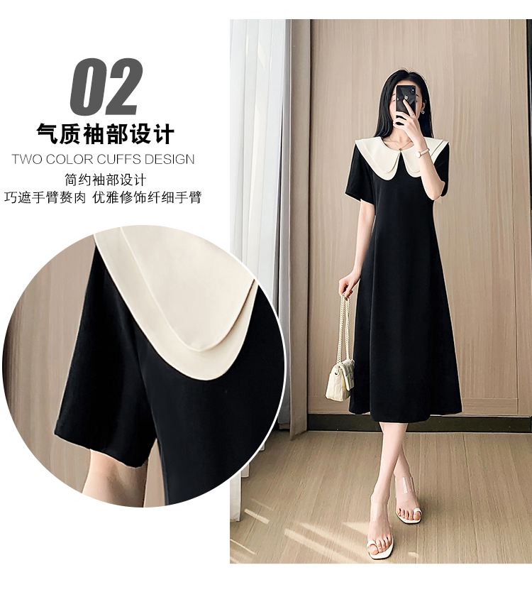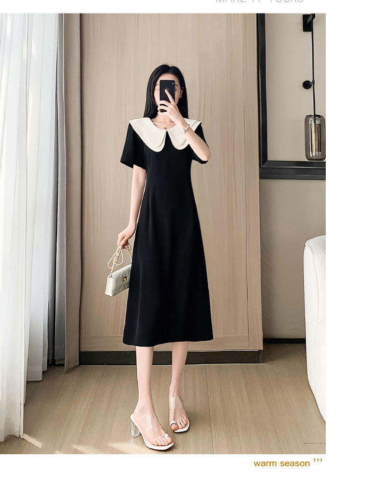 法式赫本風黑色連衣裙女夏2025新款高級感收腰顯瘦娃娃領a字裙子