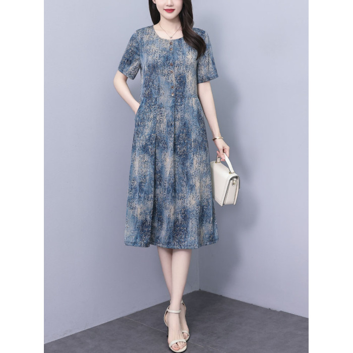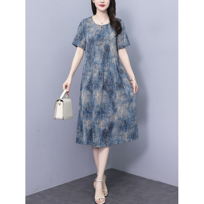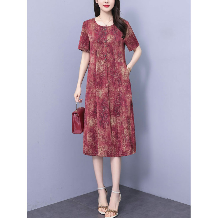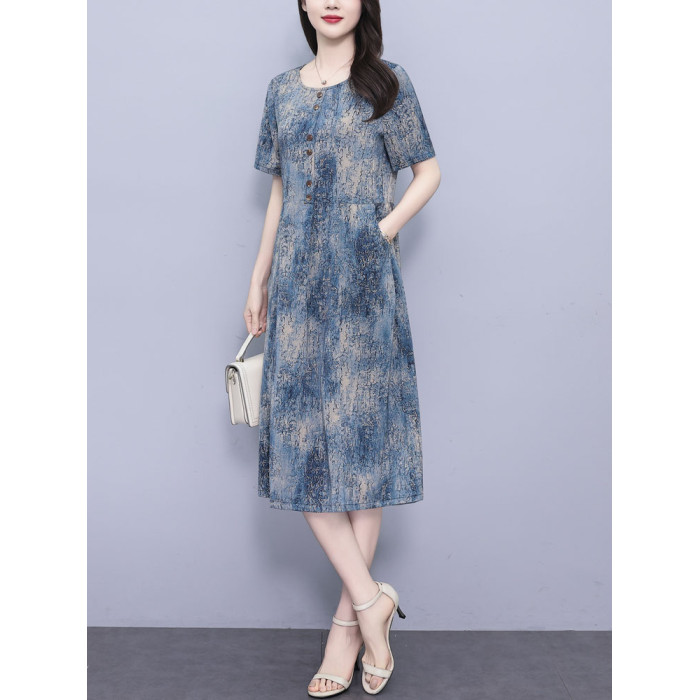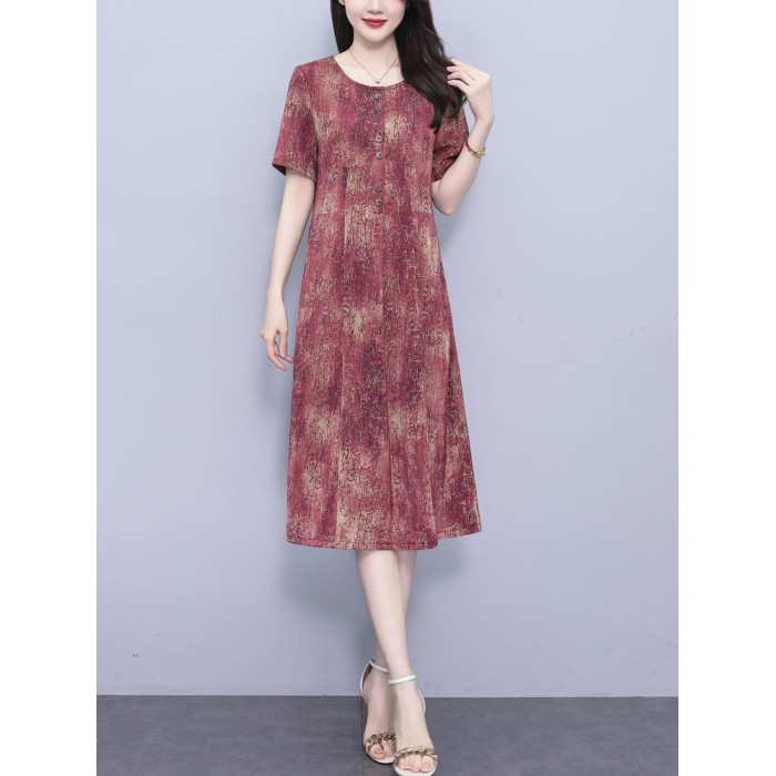 時尚高貴真絲桑蠶絲連衣裙女夏季新款中長款高級感媽媽裙顯瘦遮肉