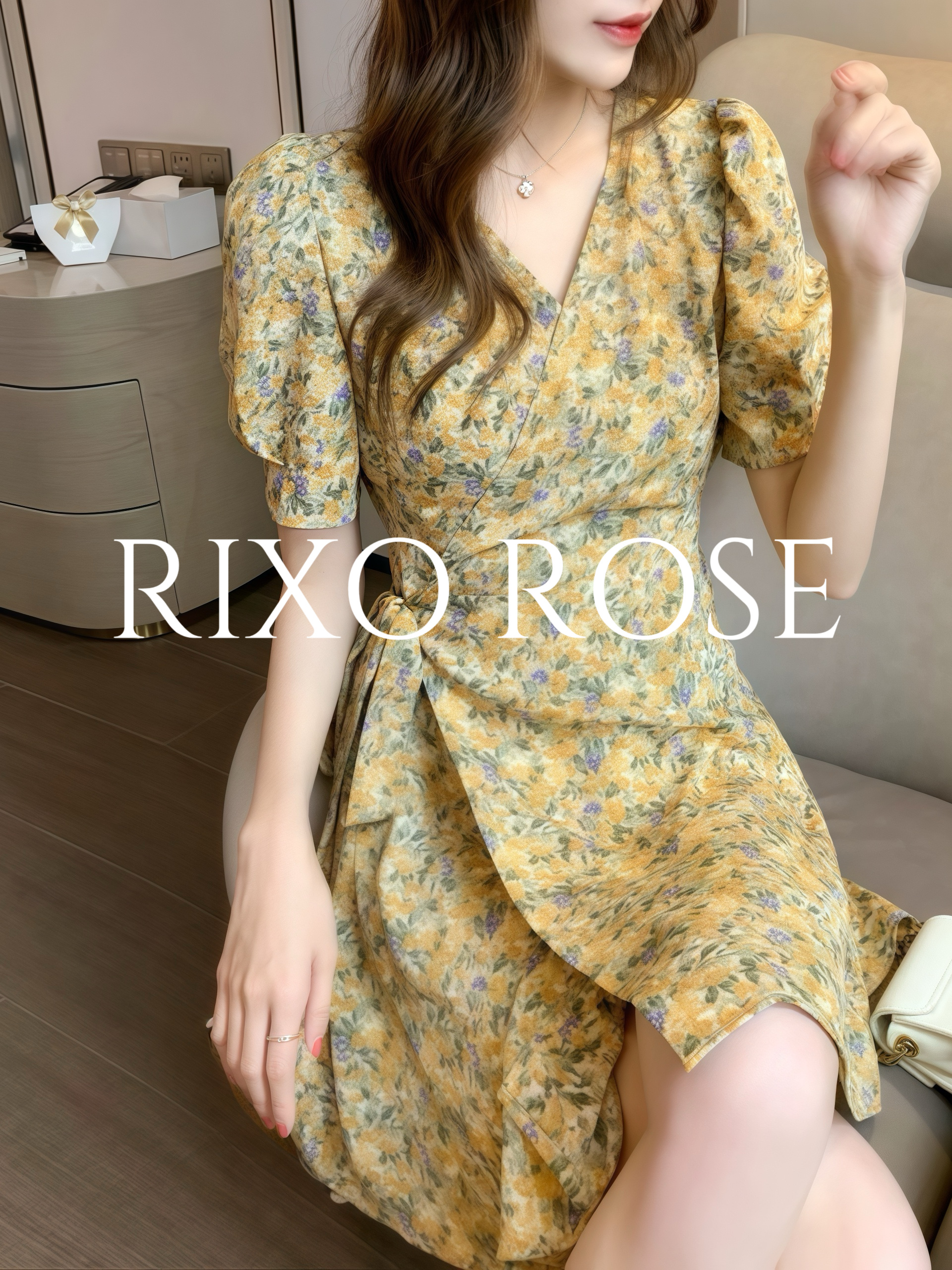 法國Rixo Rose⭐法式氣質碎花連衣裙子女夏季輕奢高級感收腰a字裙