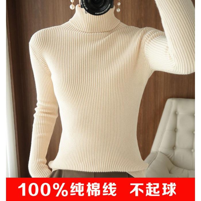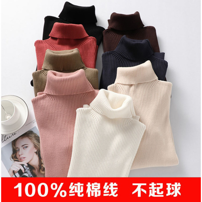 純棉線針織衫高領打底衫女秋冬加厚內搭修身緊身顯瘦保暖毛衣長袖