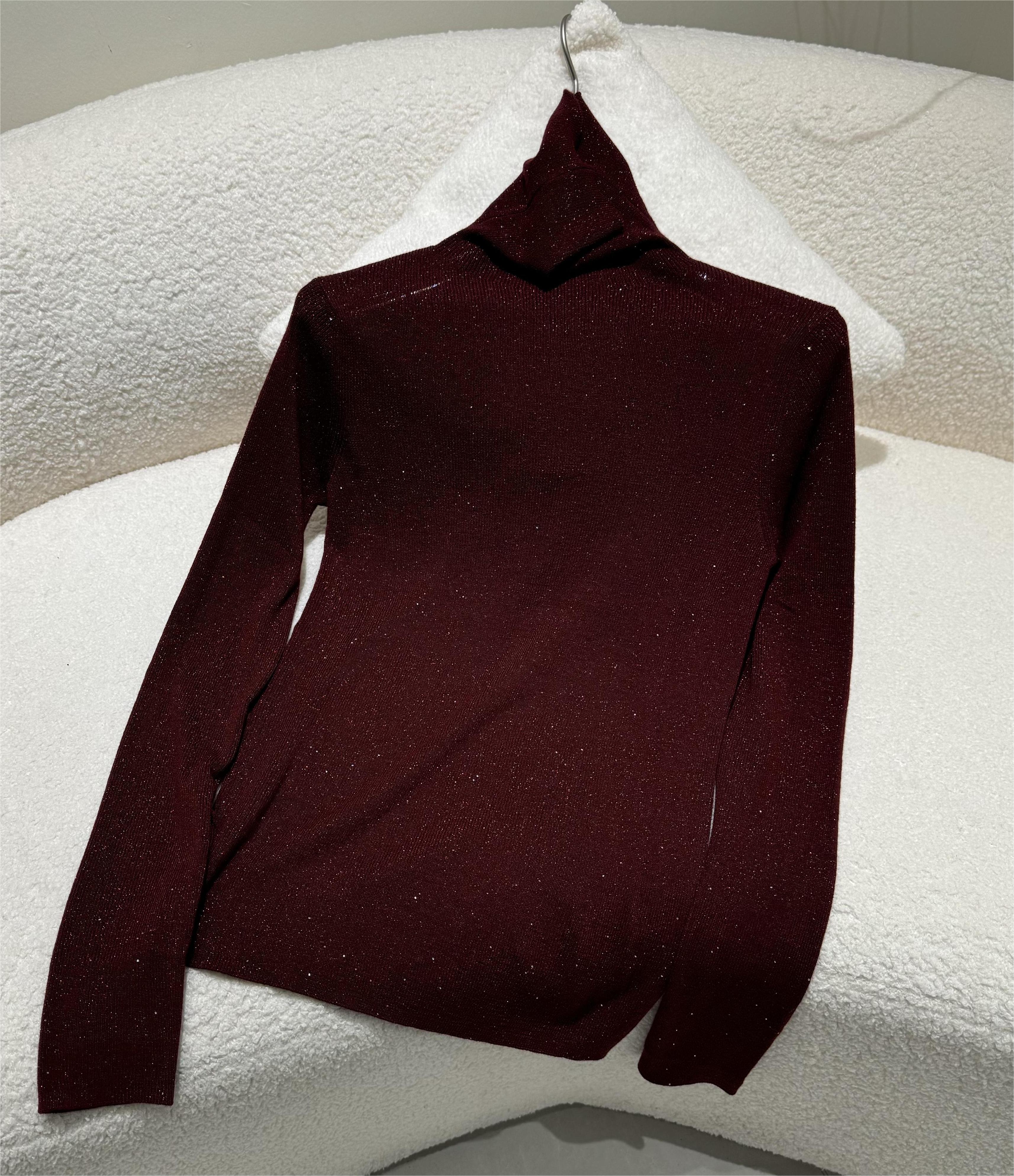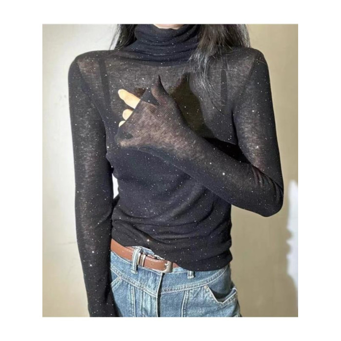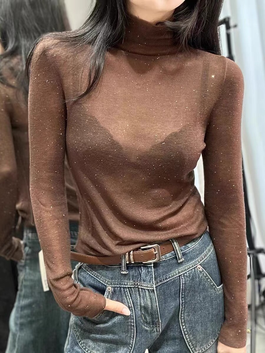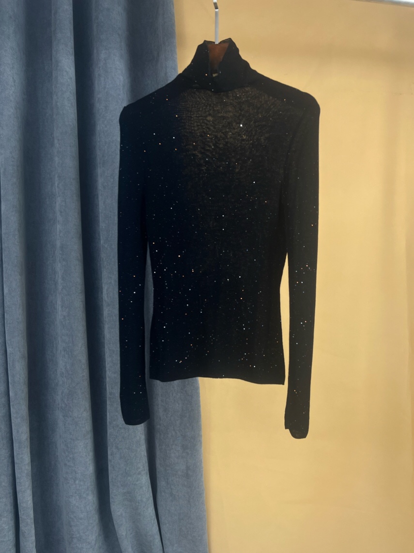 奢華~羊絨衫極柔秋冬亮片微透堆堆高領暖針織山羊絨打底衫女薄款