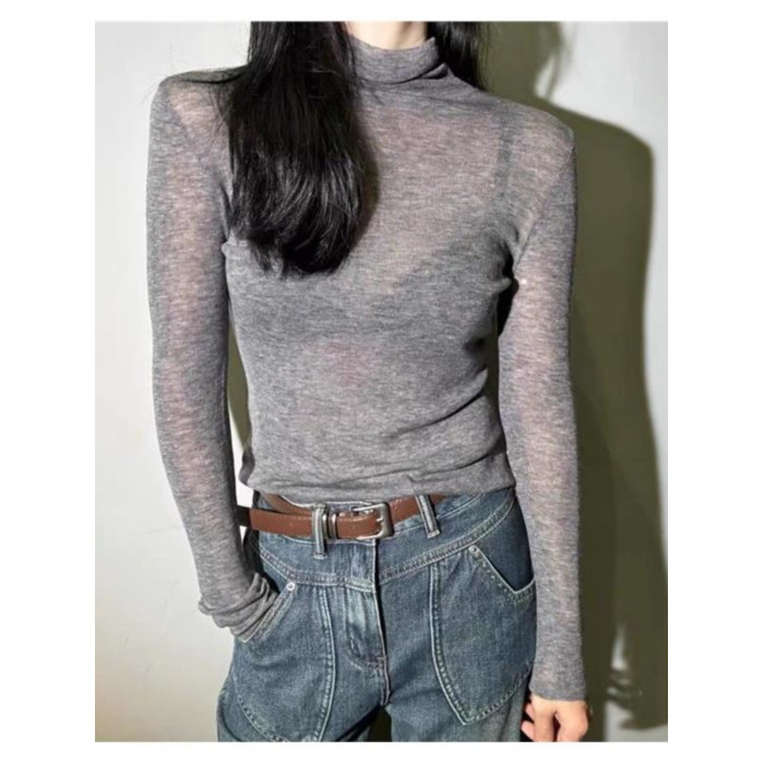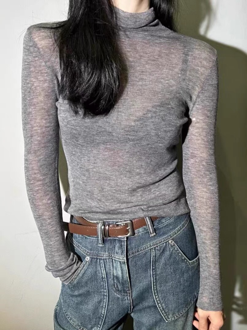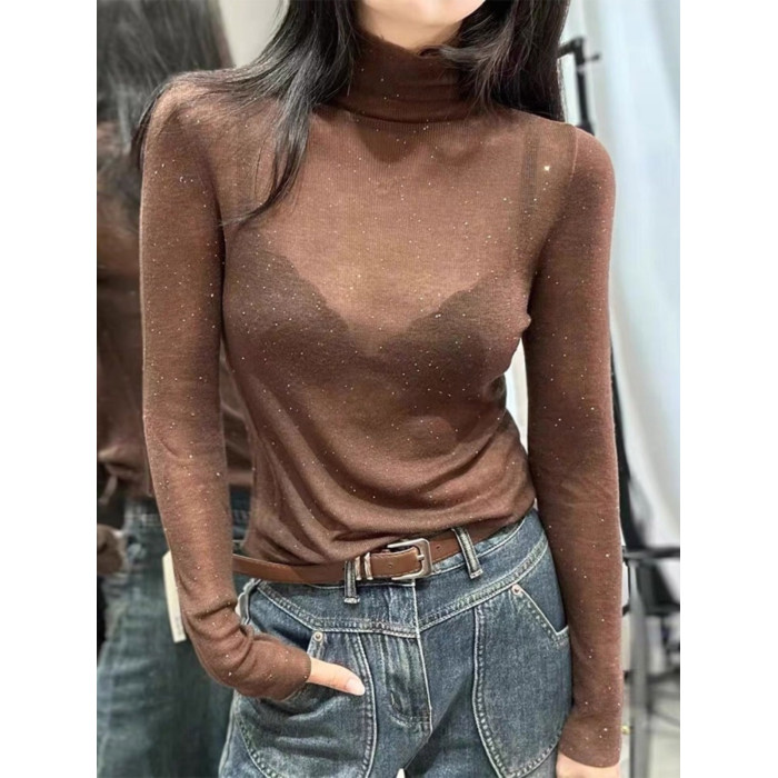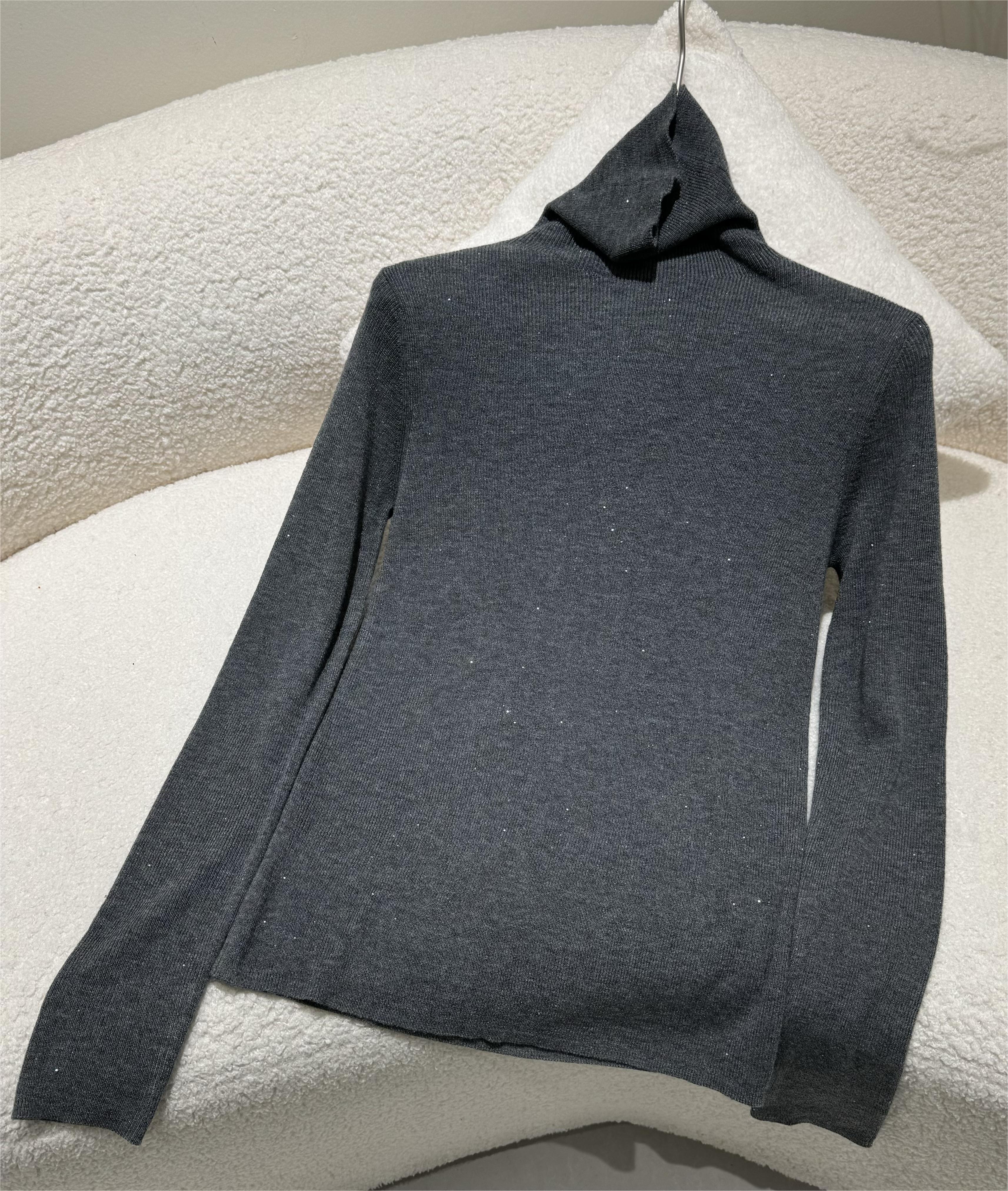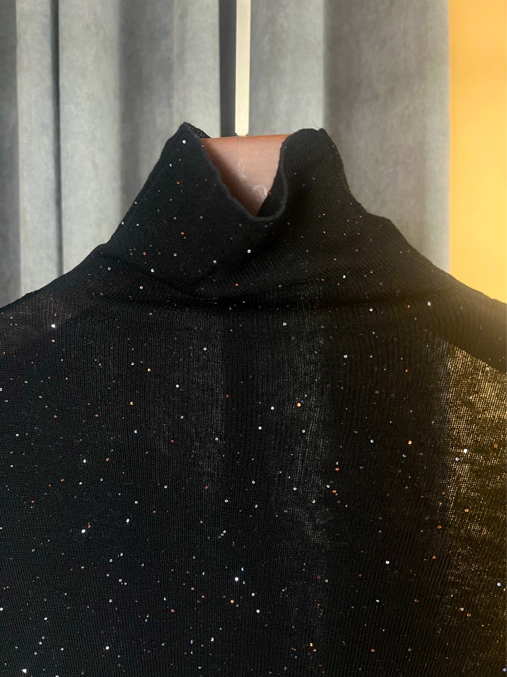 奢華~羊絨衫極柔秋冬亮片微透堆堆高領暖針織山羊絨打底衫女薄款