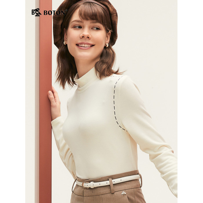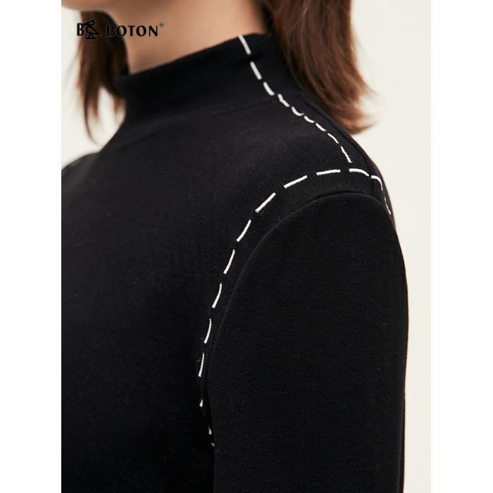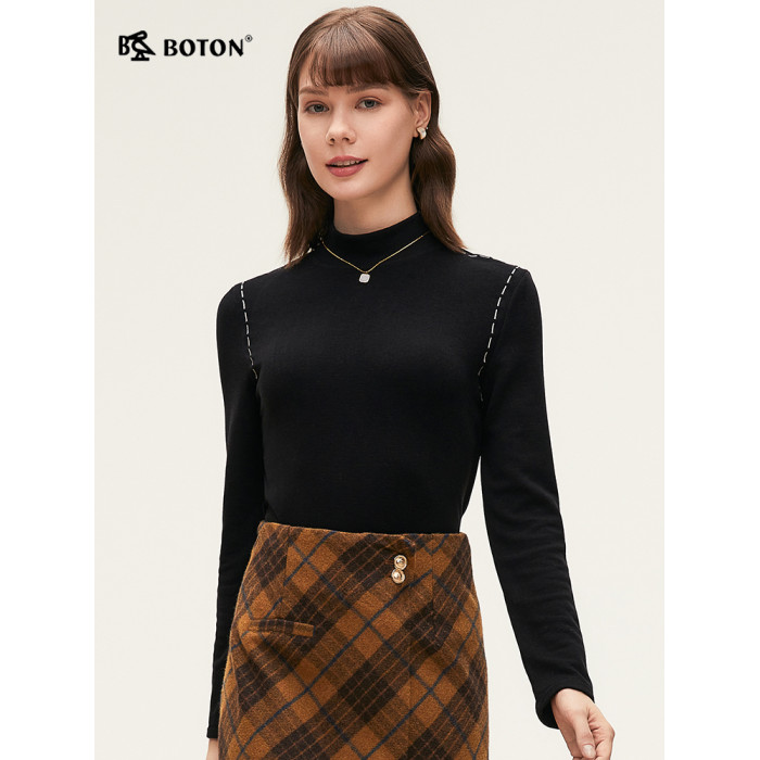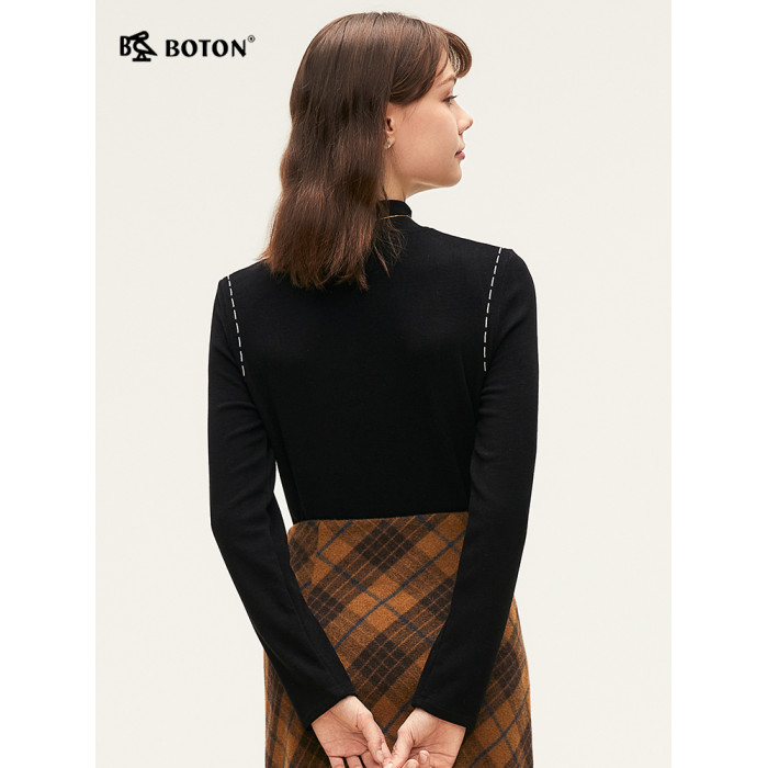 波頓2025秋冬季新款設計感小衆女士針織打底衫黑白色修身毛衣