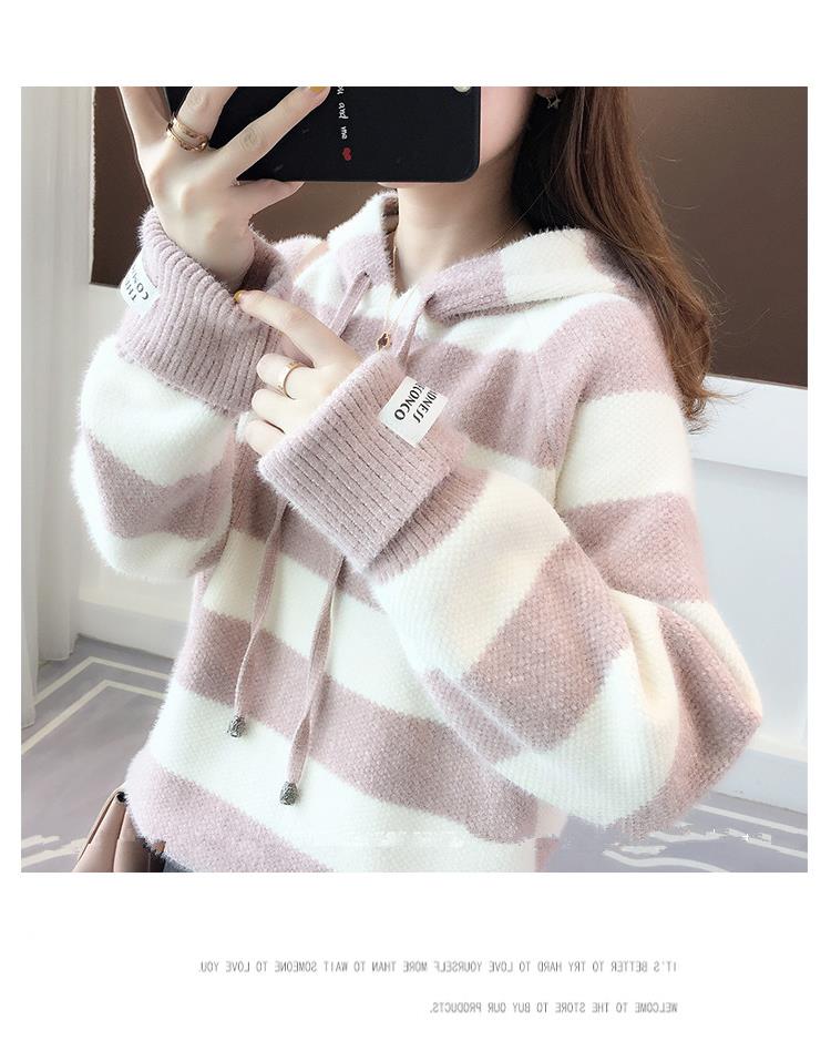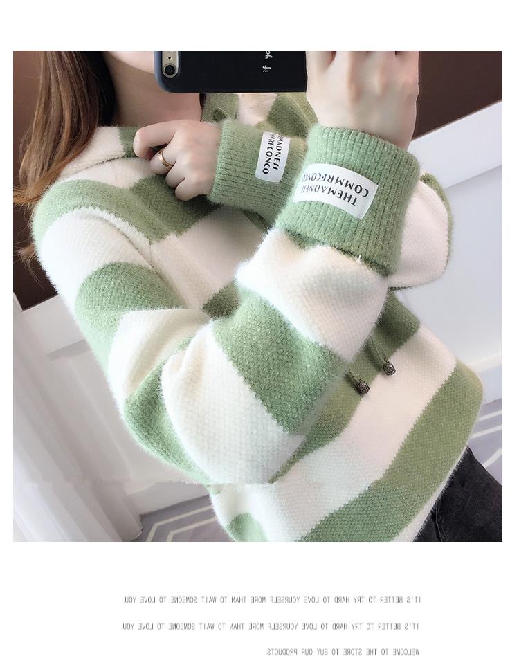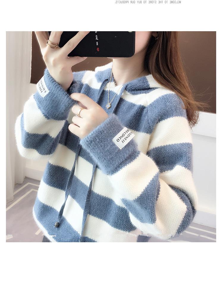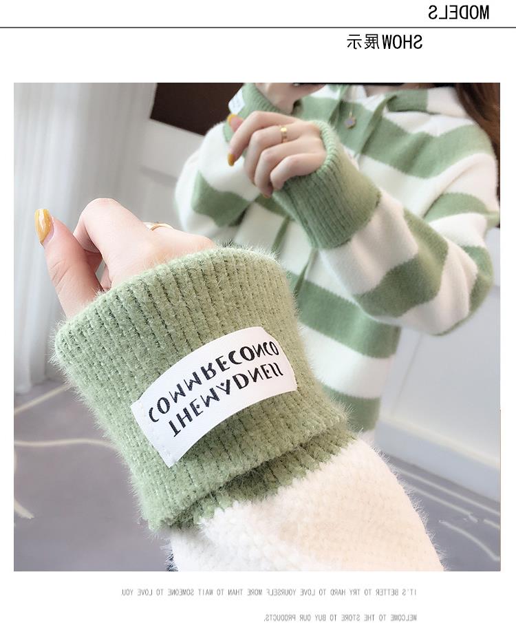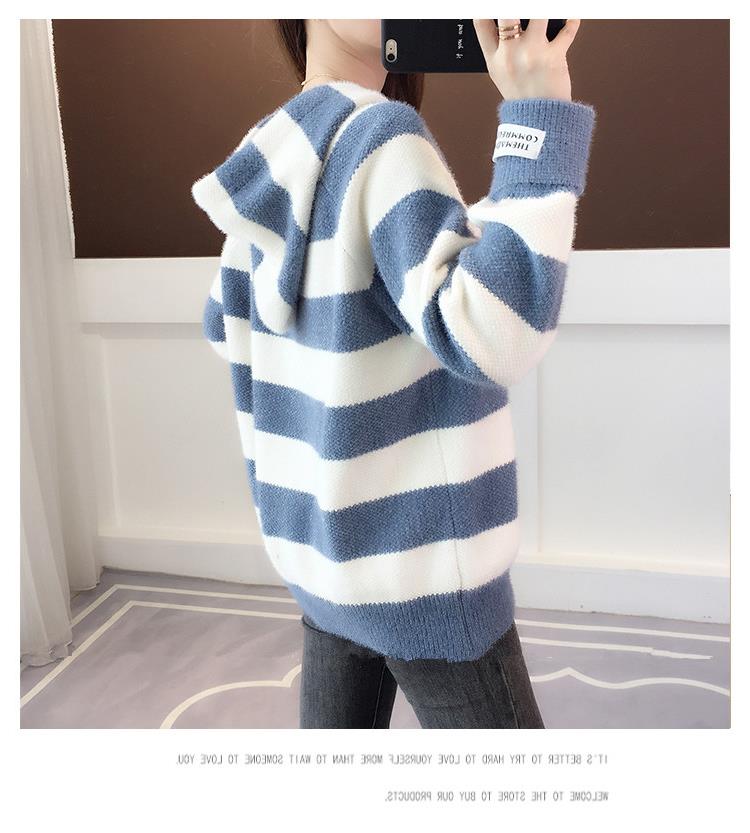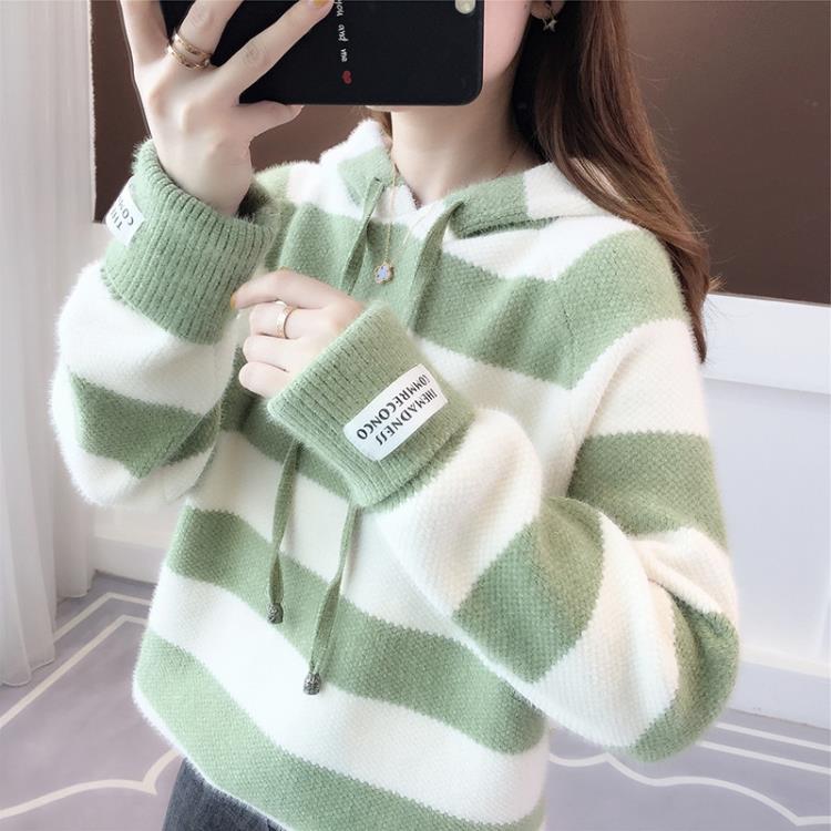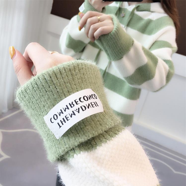 條紋連帽毛衣外套女秋冬季大童13嵗15高中11初中學生12針織打底衫
