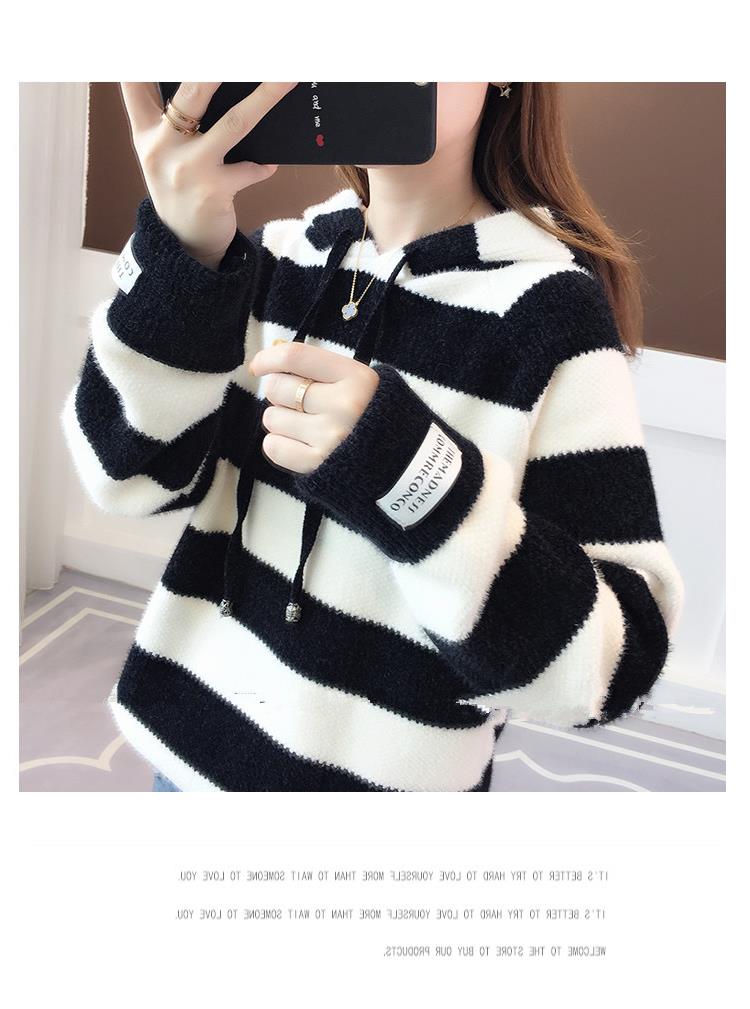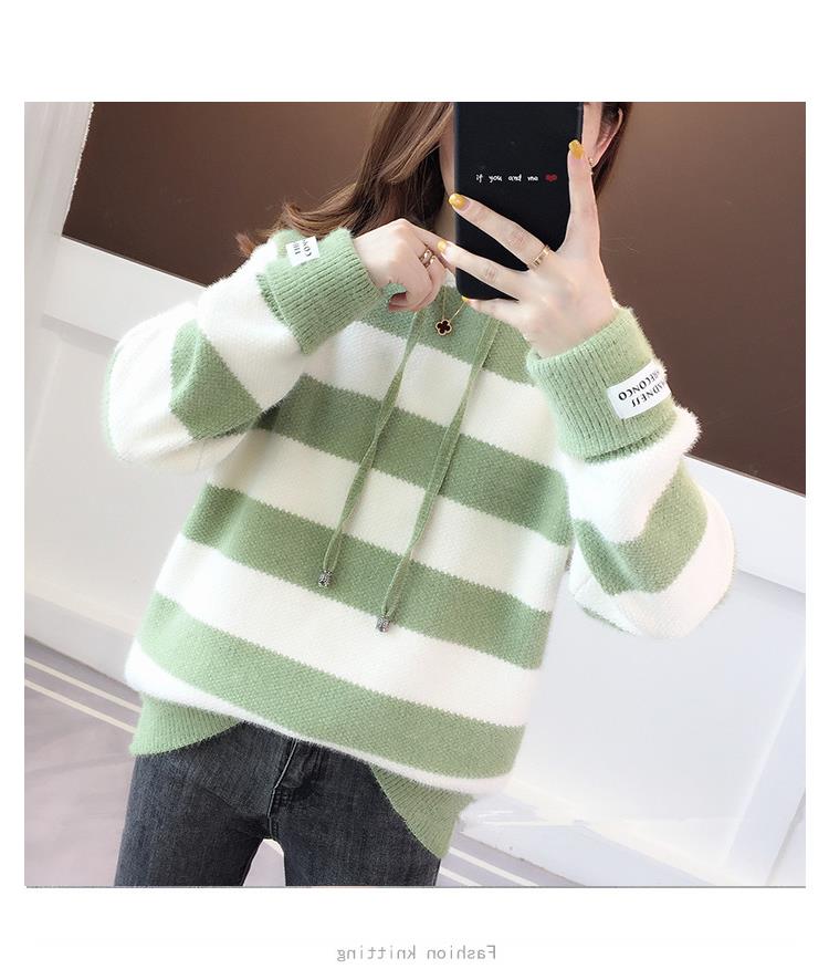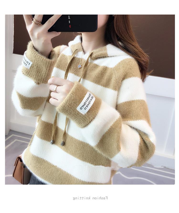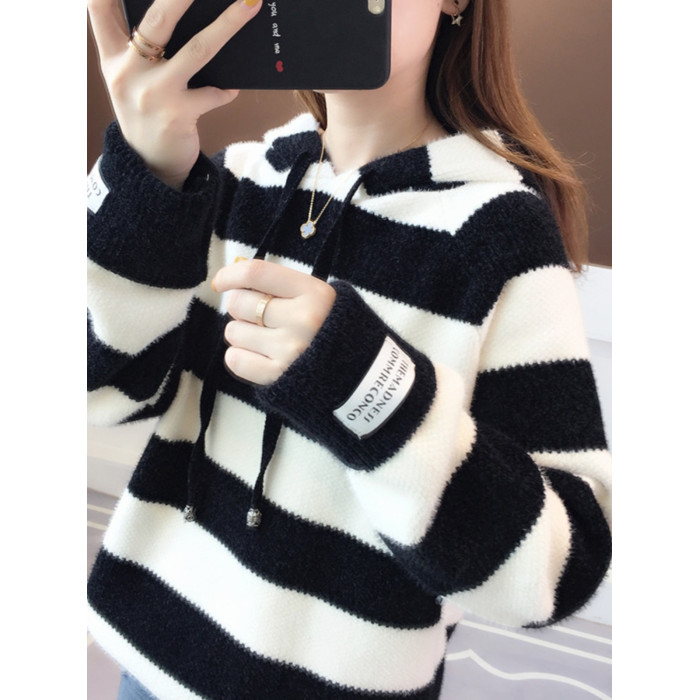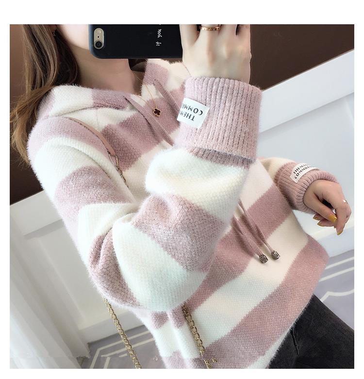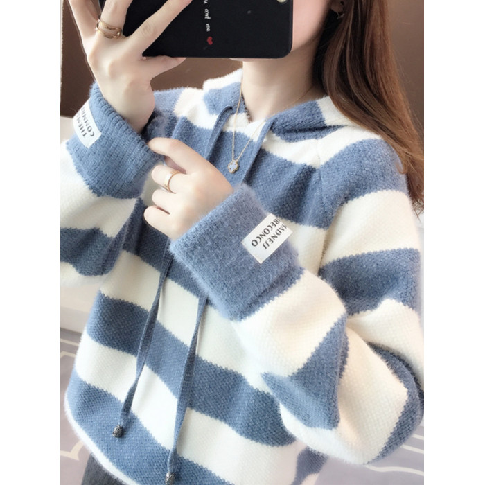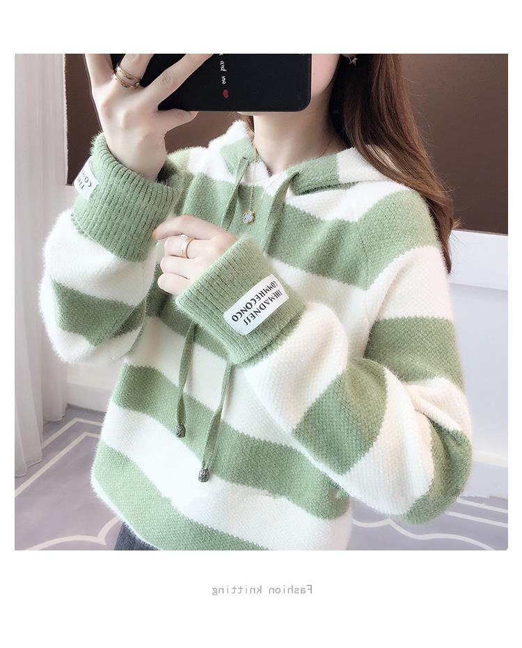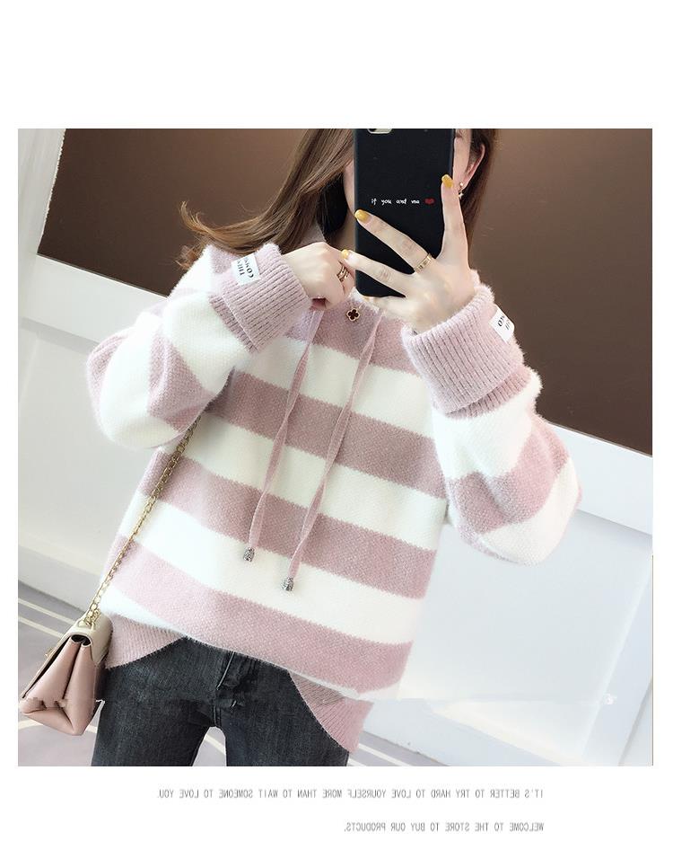 條紋連帽毛衣外套女秋冬季大童13嵗15高中11初中學生12針織打底衫
